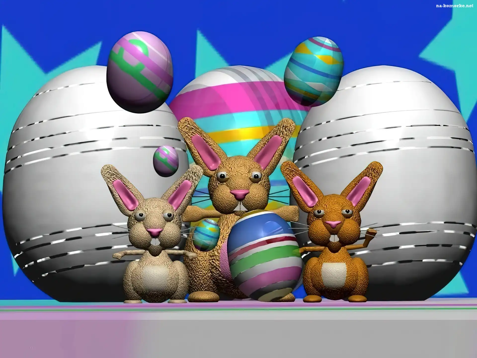 Trzy, Wielkanoc, Zajączki, Pisanki na Komórkę