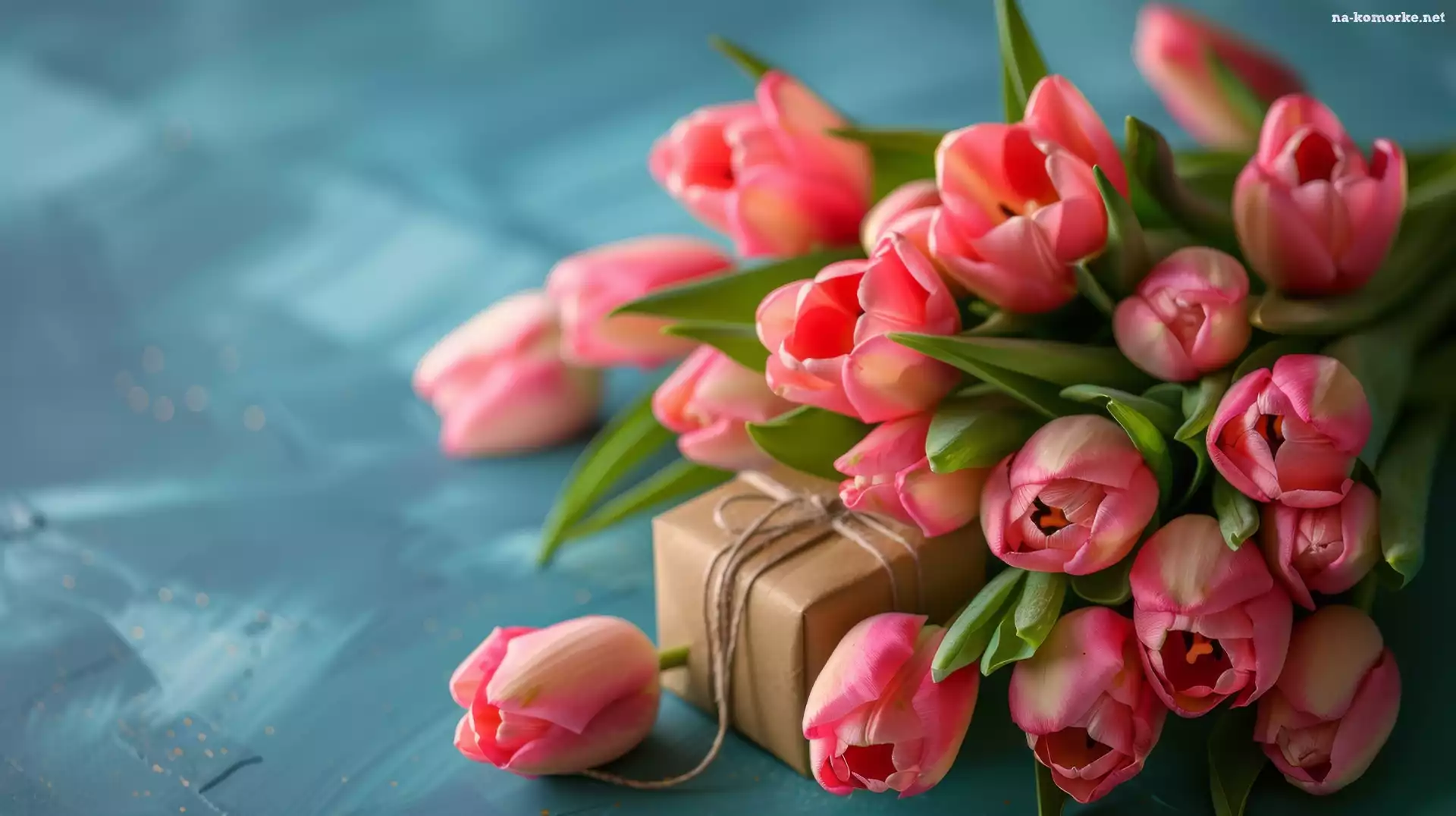 Bukiet, Prezent, Różowe, Tulipany na Komórkę
