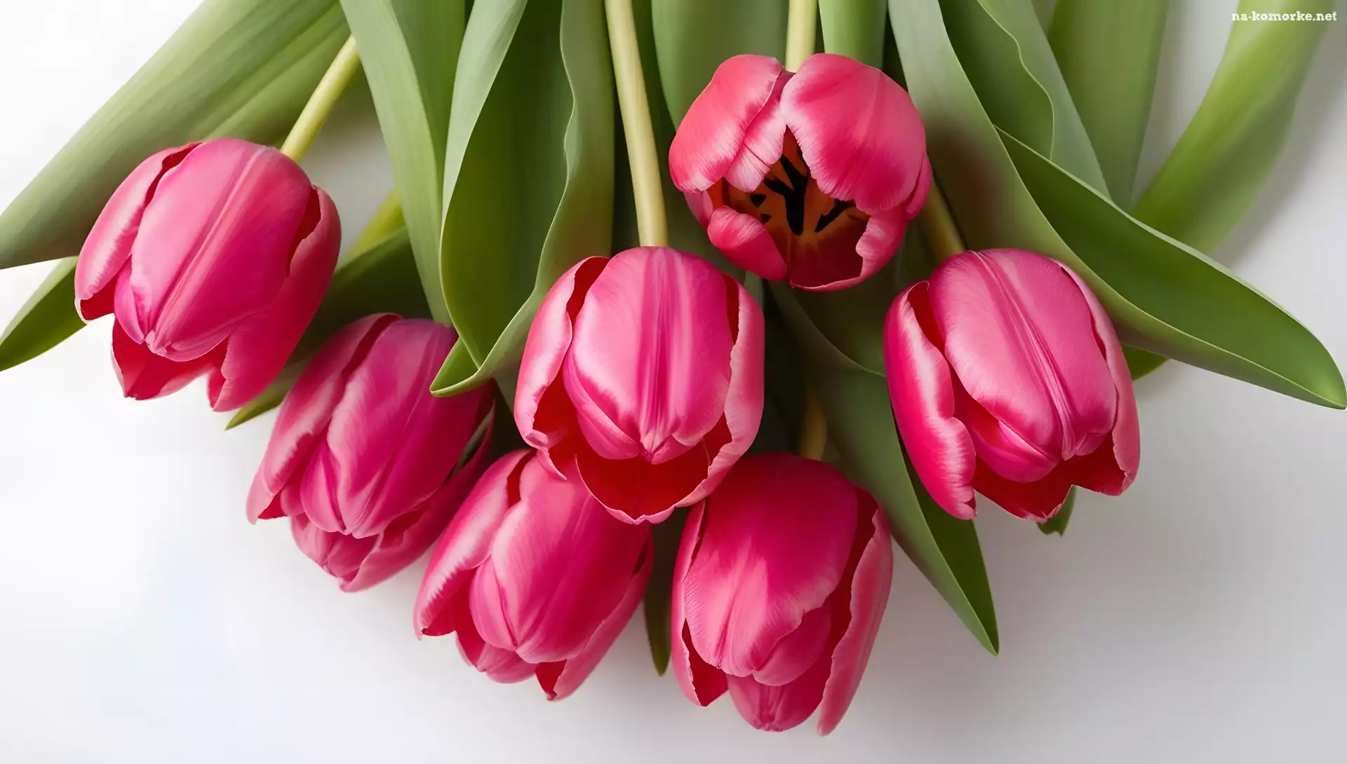 Ciemno-różowe, Listki, Tulipany na Komórkę