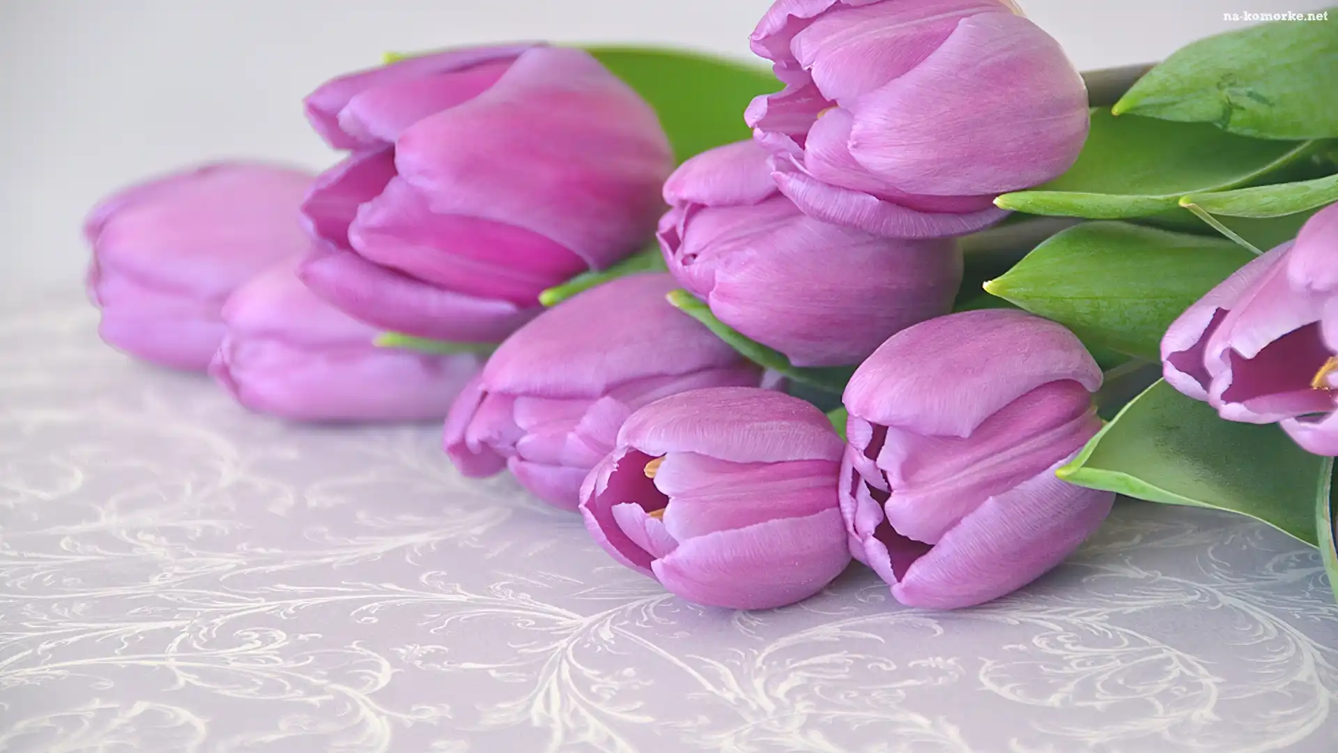 Fioletowe, Tulipany, Bukiet na Komórkę