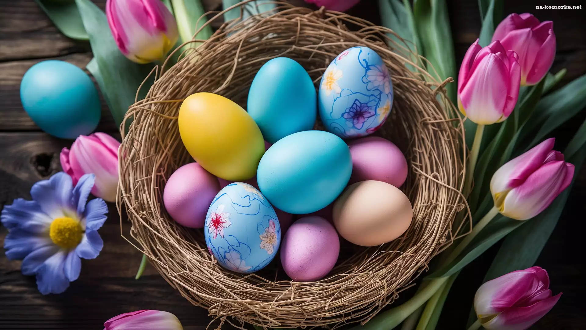 Różowe, Wielkanoc, Pisanki, Tulipany, Kolorowe, Gniazdo na Komórkę