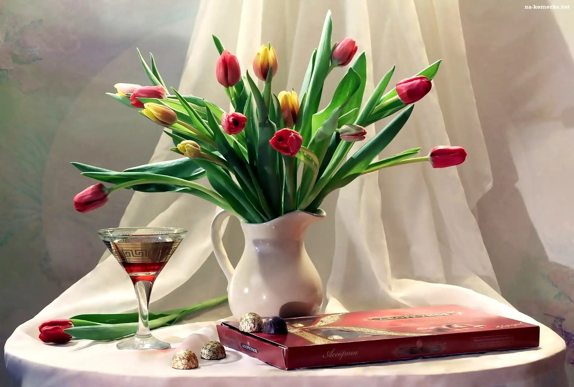 Kolorowe, Tulipany, Kompozycja na Komórkę