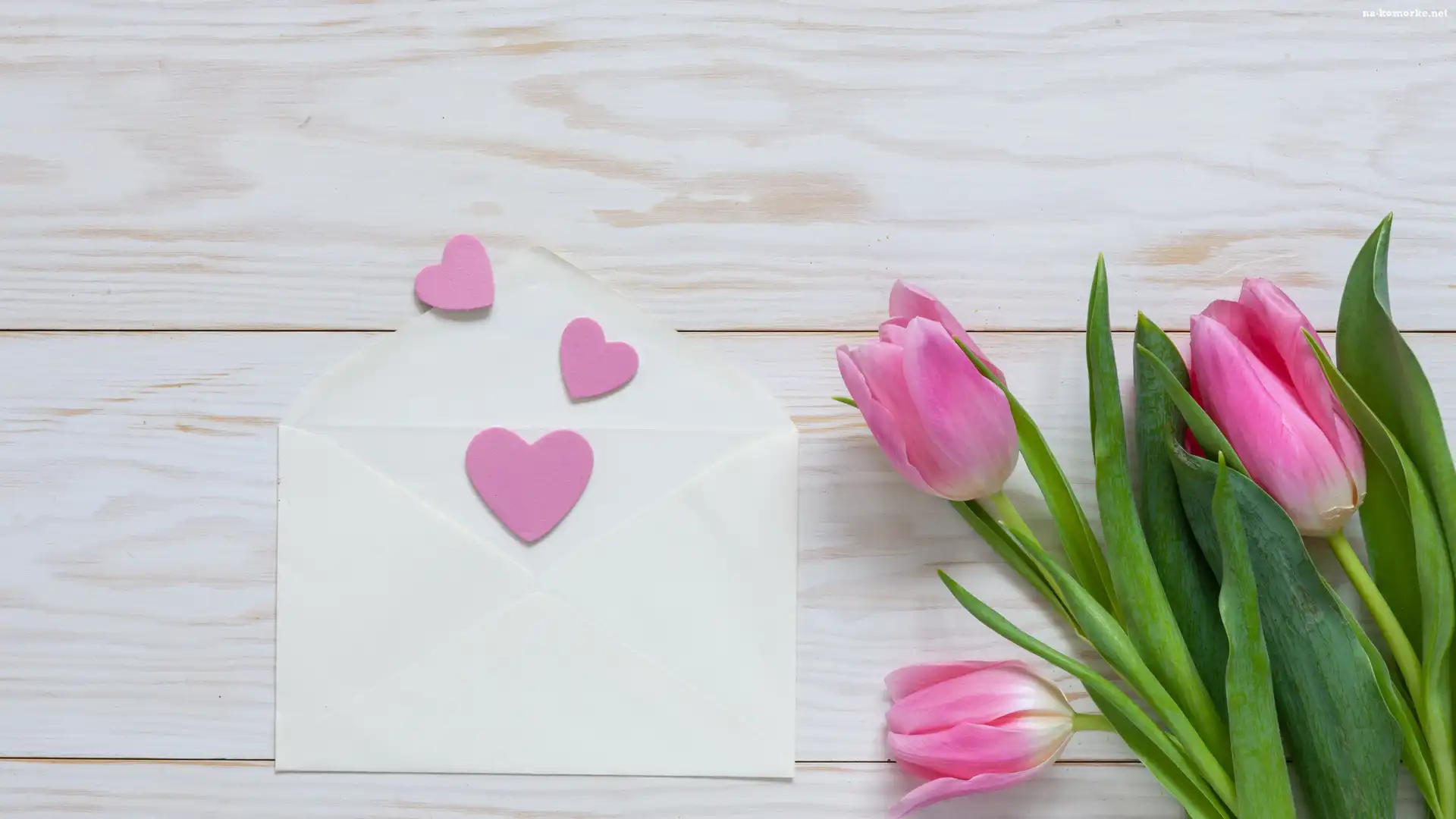 Tulipany, Walentynki, Koperta, Serduszka na Komórkę