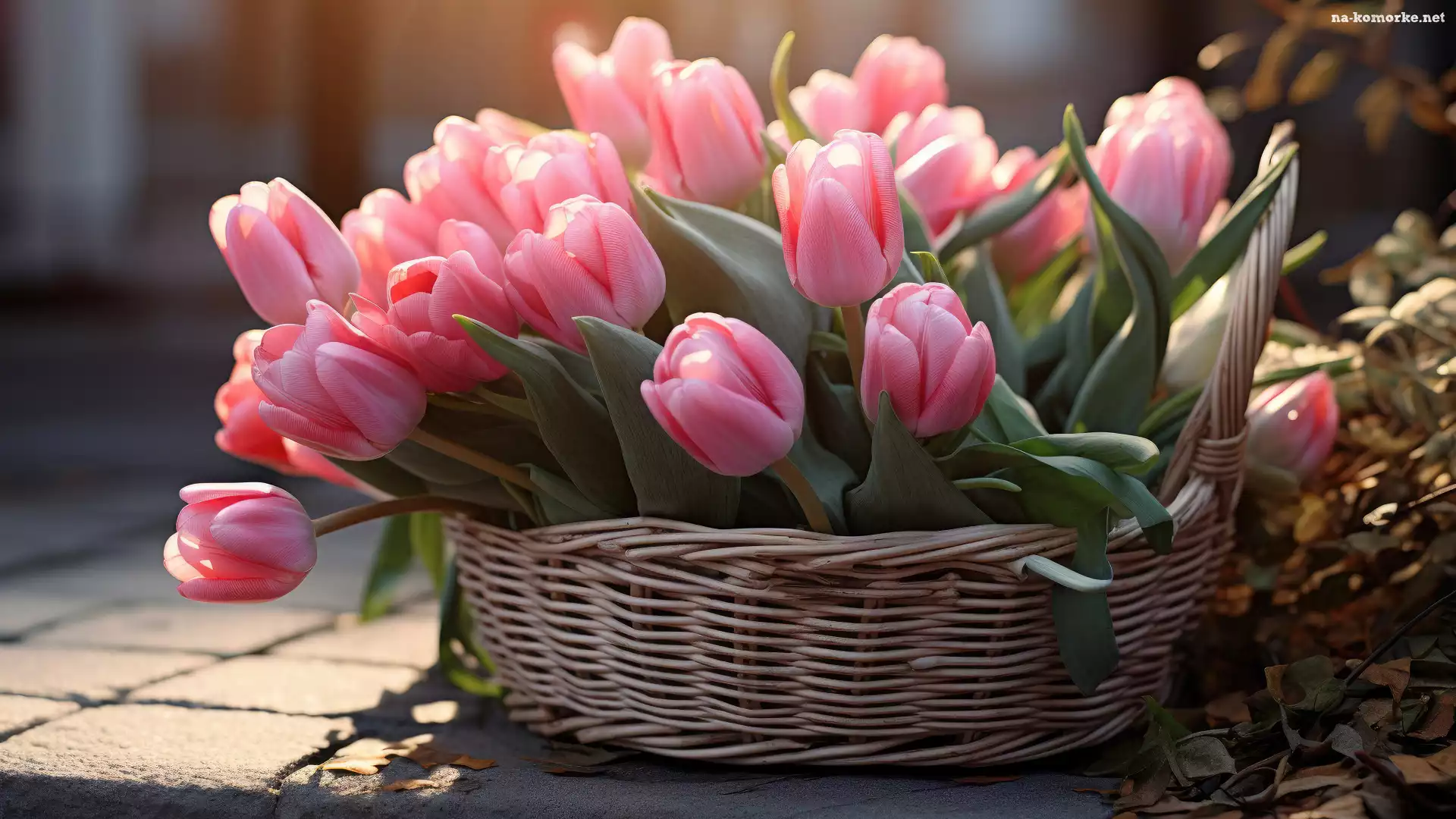 Kwiaty, Tulipany, Koszyk, Różowe, Chodnik na Komórkę