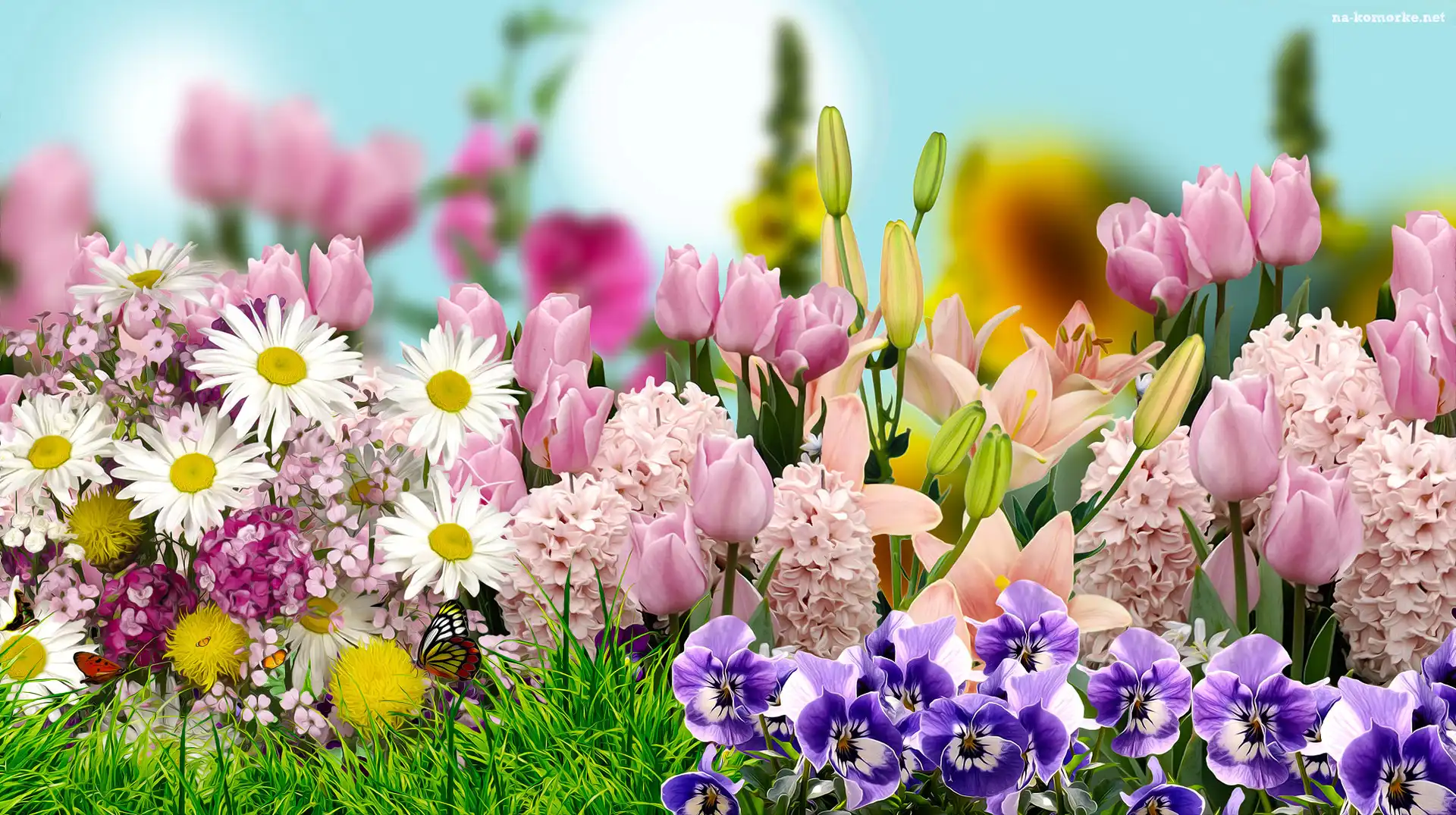 Kwiaty, Tulipany, 2D, Margerytki, Hiacynty, Bratki, Lilia na Komórkę