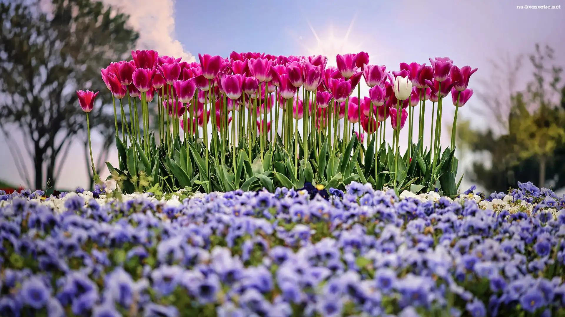 Kwiaty, Drzewa, Różowe, Tulipany na Komórkę
