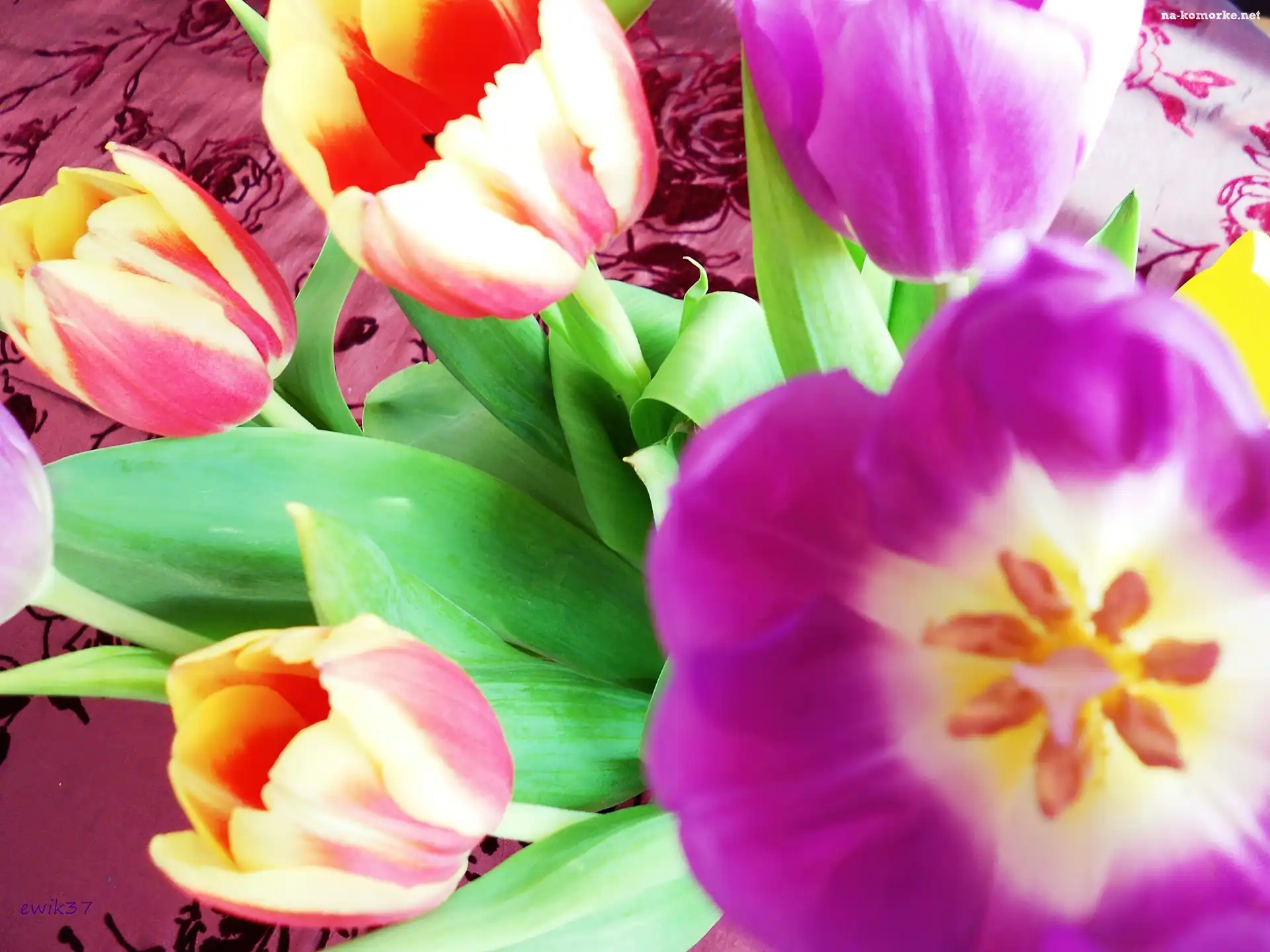 Tulipany, Fioletowe, Żółto, Czerwone na Komórkę