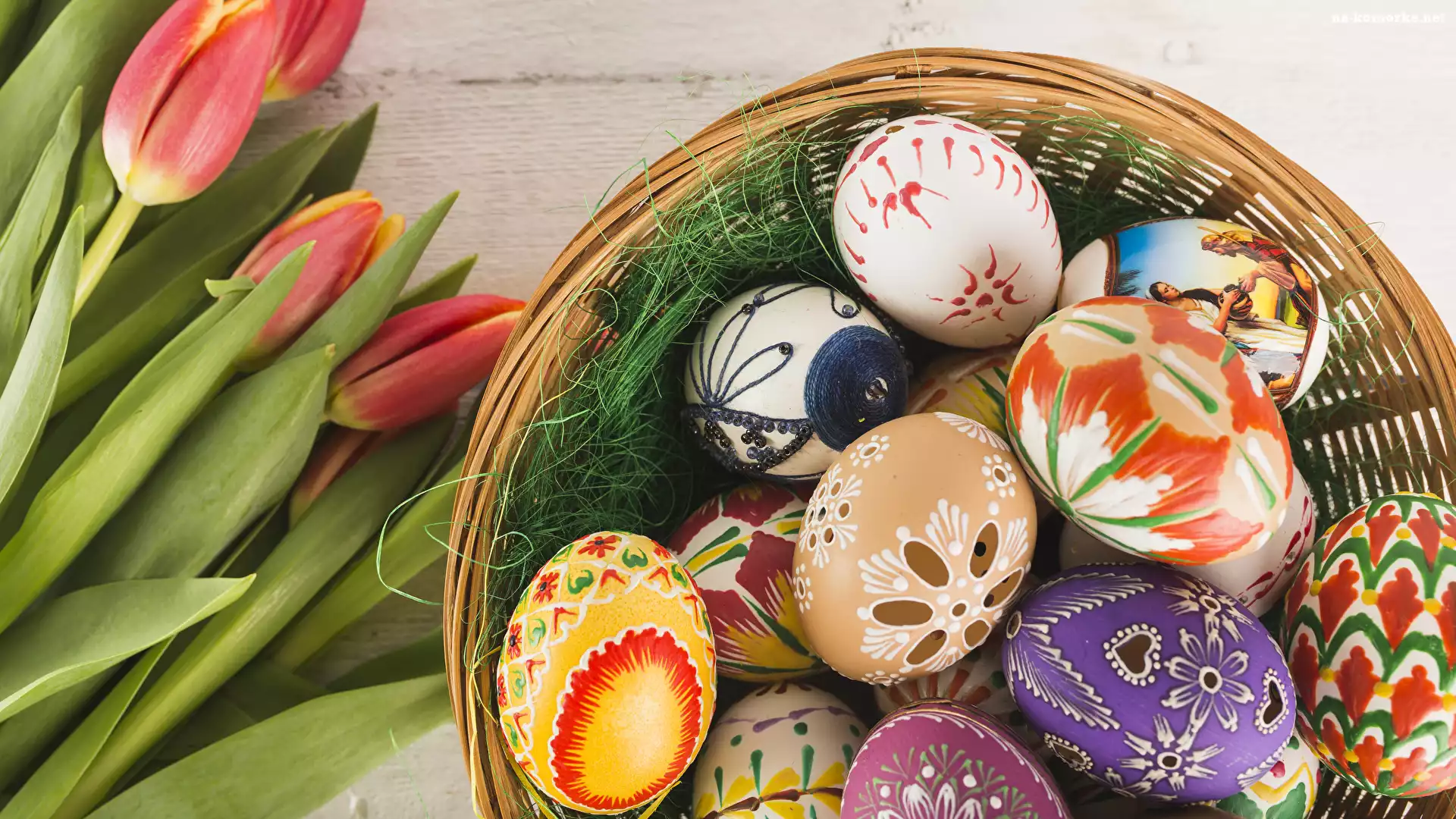 Tulipany, Kolorowe, Koszyk, Wielkanoc, Pisanki, Kwiaty na Komórkę