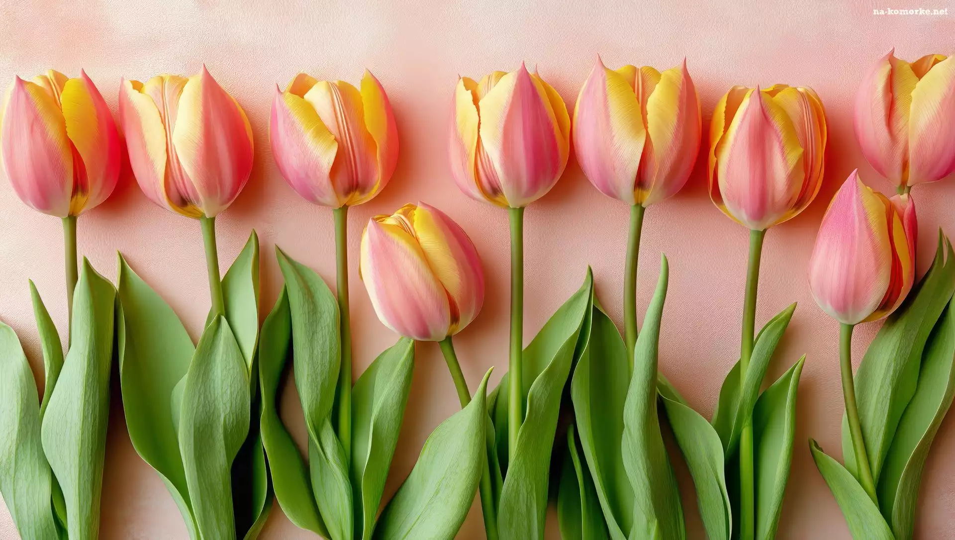 Różowo-żółte, Listki, Tulipany na Komórkę
