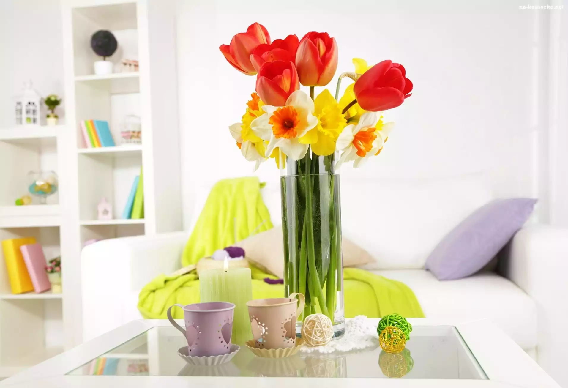Tulipany, Pokój, Wnętrze, Bukiet, Stół, Żonkile na Komórkę