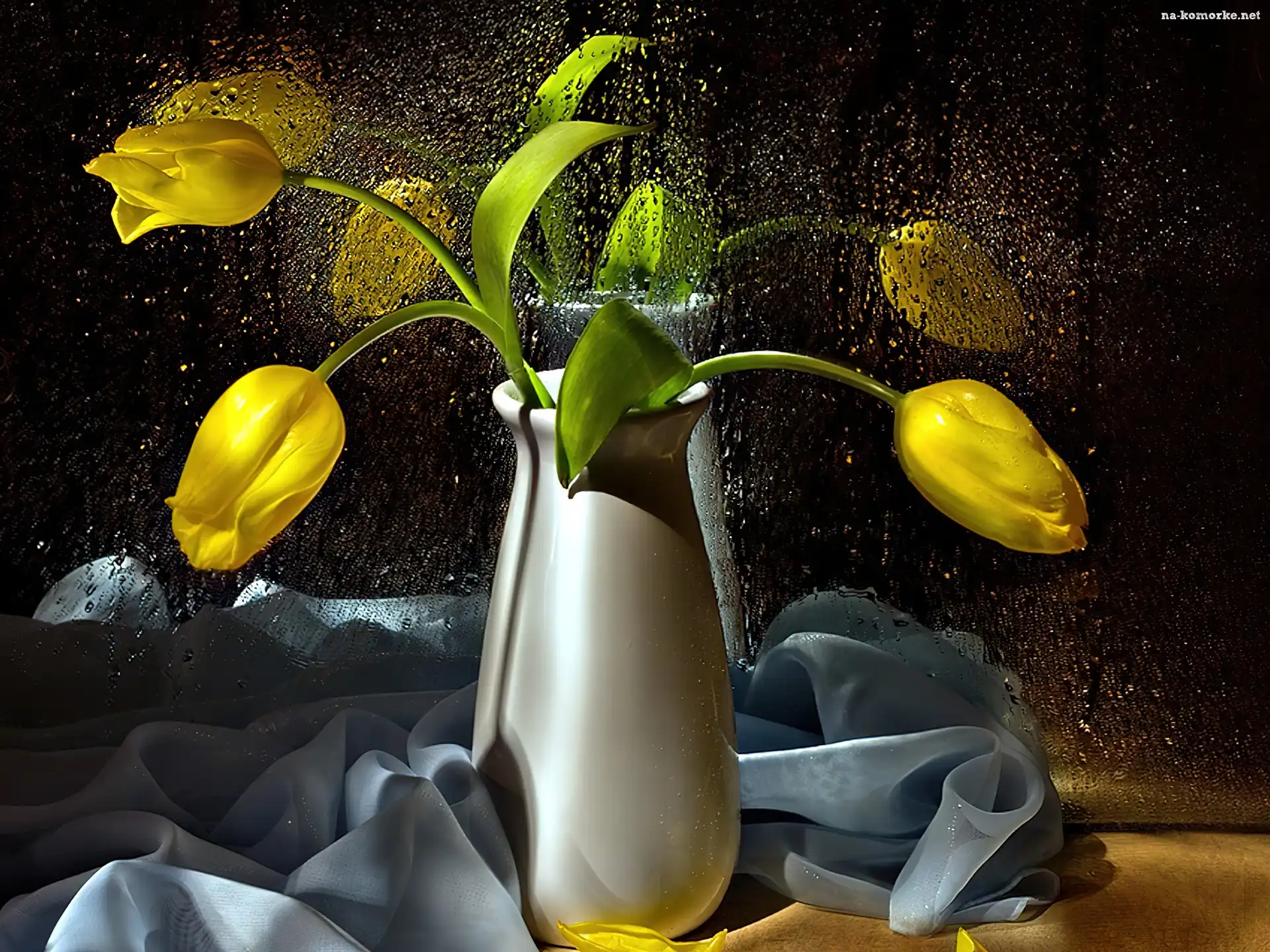 Żółte, Wody, Tulipany, Krople na Komórkę