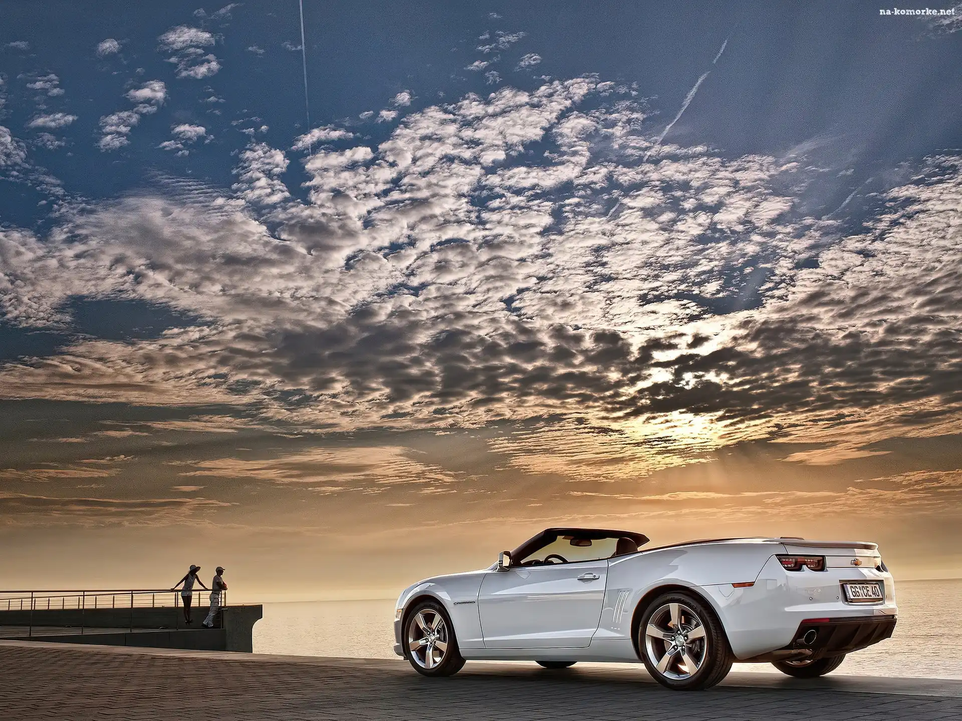 Turyści, Chevrolet, Camaro, Morze, Chmury na Komórkę