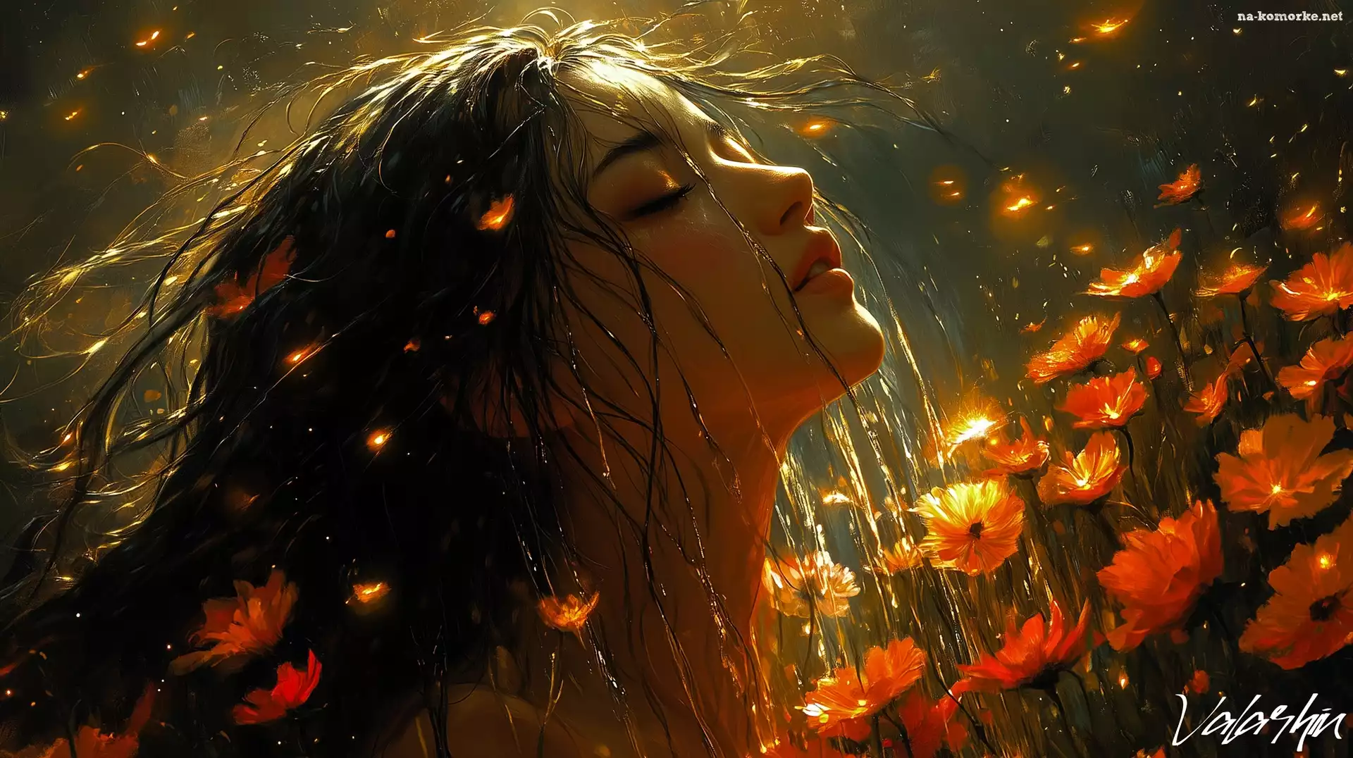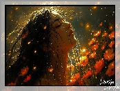 Dziewczyna, Włosy, Kwiaty, Twarz, Grafika AI na Komórkę