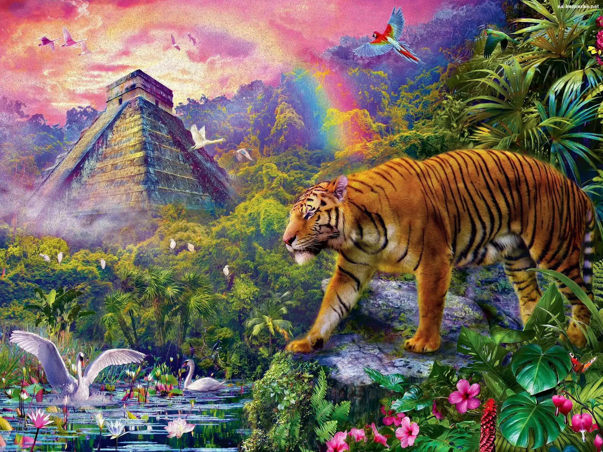 Tygrys, Obraz, Dżungla, Tęcza na Komórkę