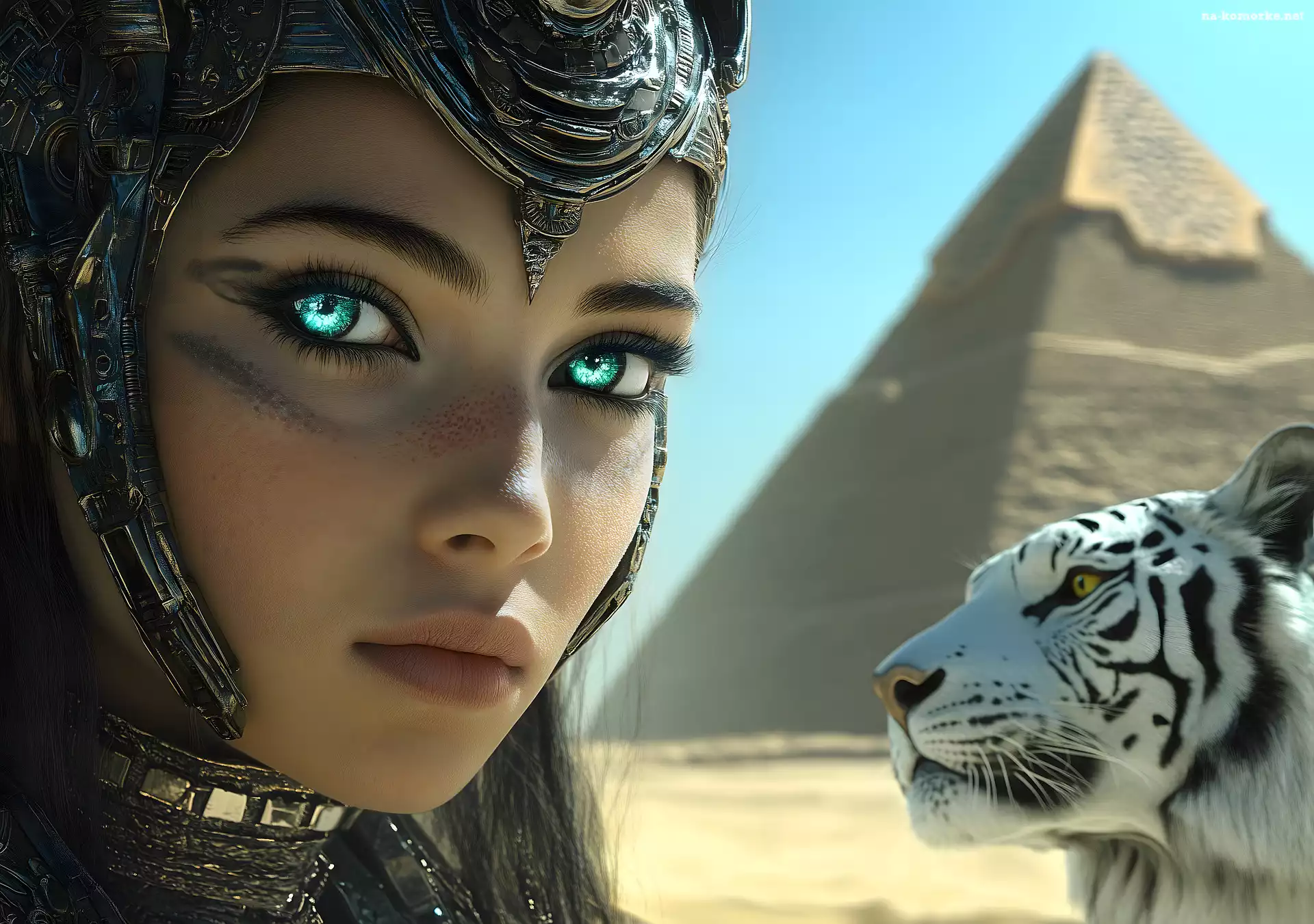 Kobieta, Tygrys, Piramidy, Hełm, Grafika na Komórkę