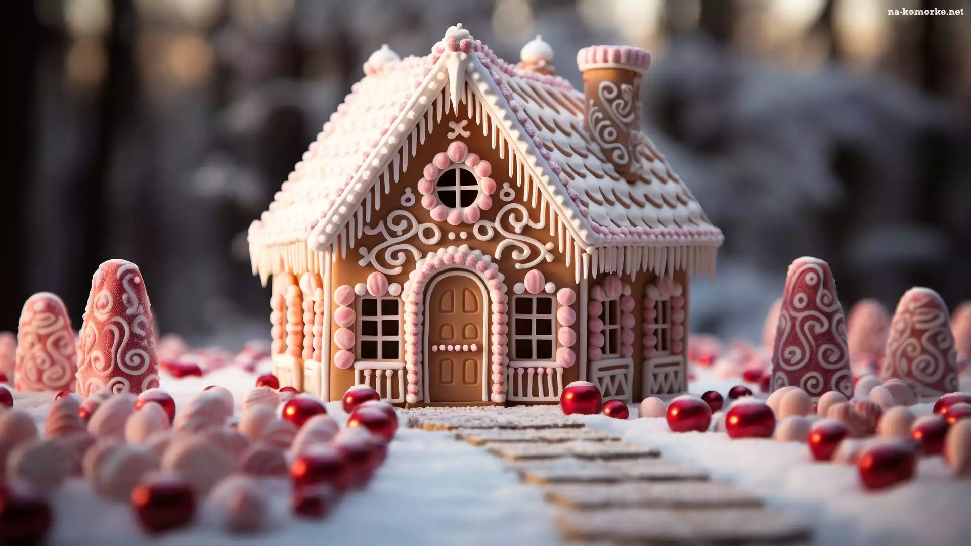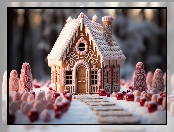 Domek, Kule, Czerwone, Pierniki, Białe, AI, Stożki, Udekorowany na Komórkę