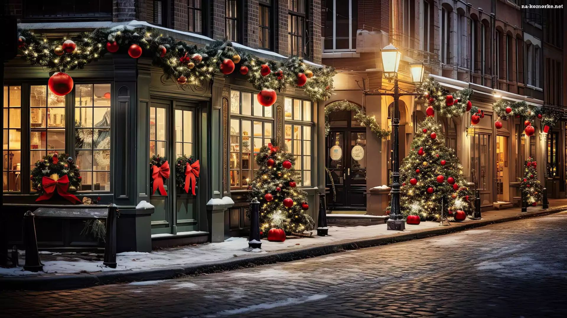 Dekoracje, Choinki, Grafika, Latarnie, Domy, Boże Narodzenie, Ulica na Komórkę