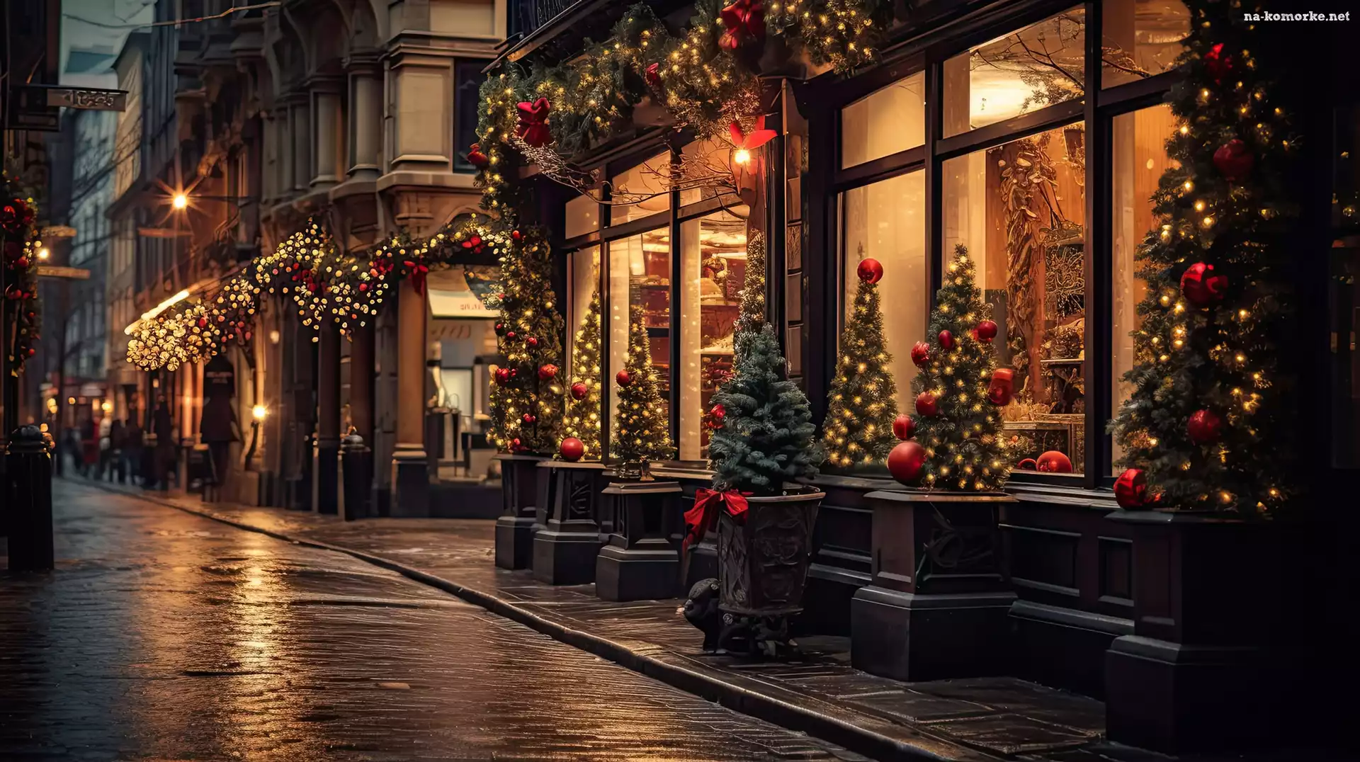 Ulica, Światła, Świąteczne, Boże Narodzenie, Dekoracje, Grafika, Choinki, Domy na Komórkę