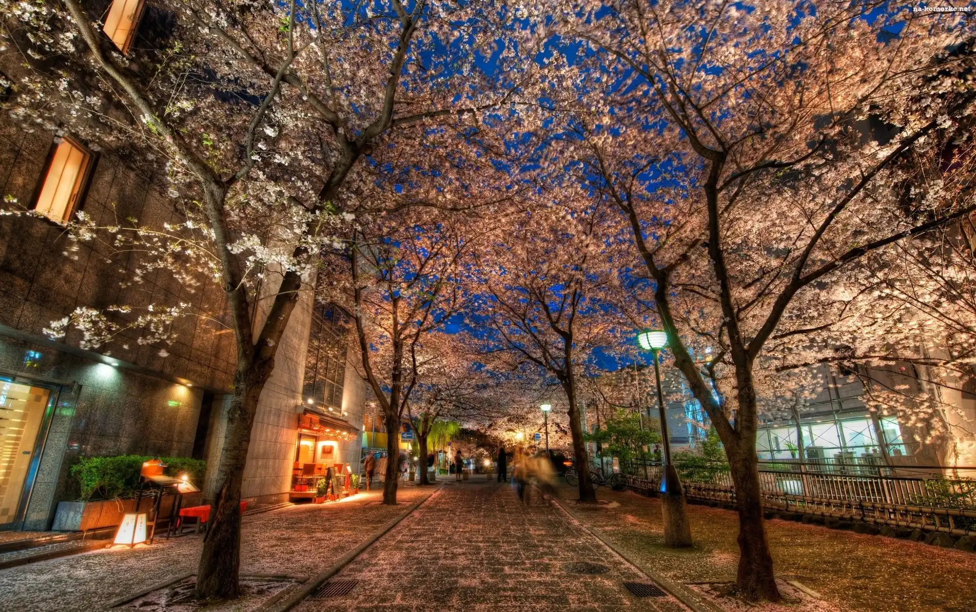 Ulica, Drzewa, Miasto nocą na Komórkę