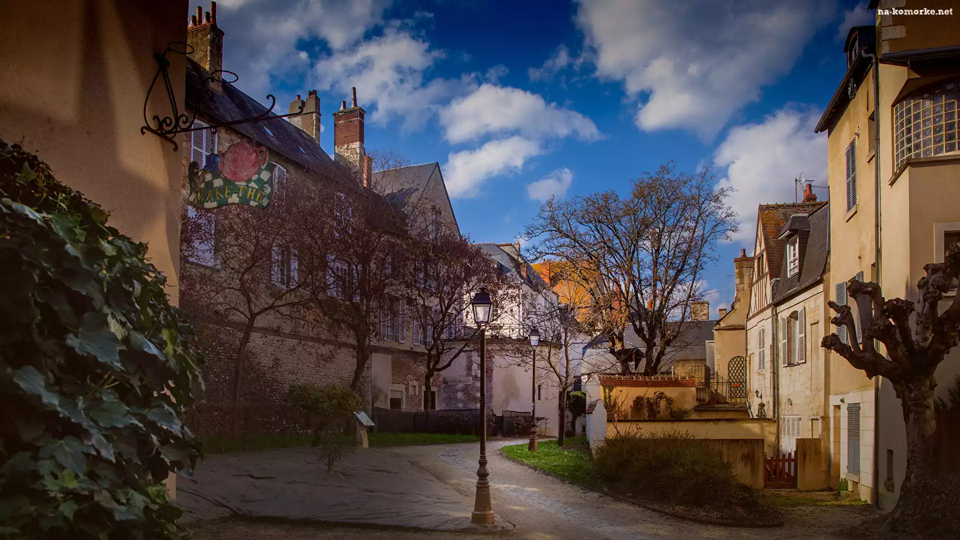 Latarnia uliczna, Drzewa, Ulica, Domy na Komórkę