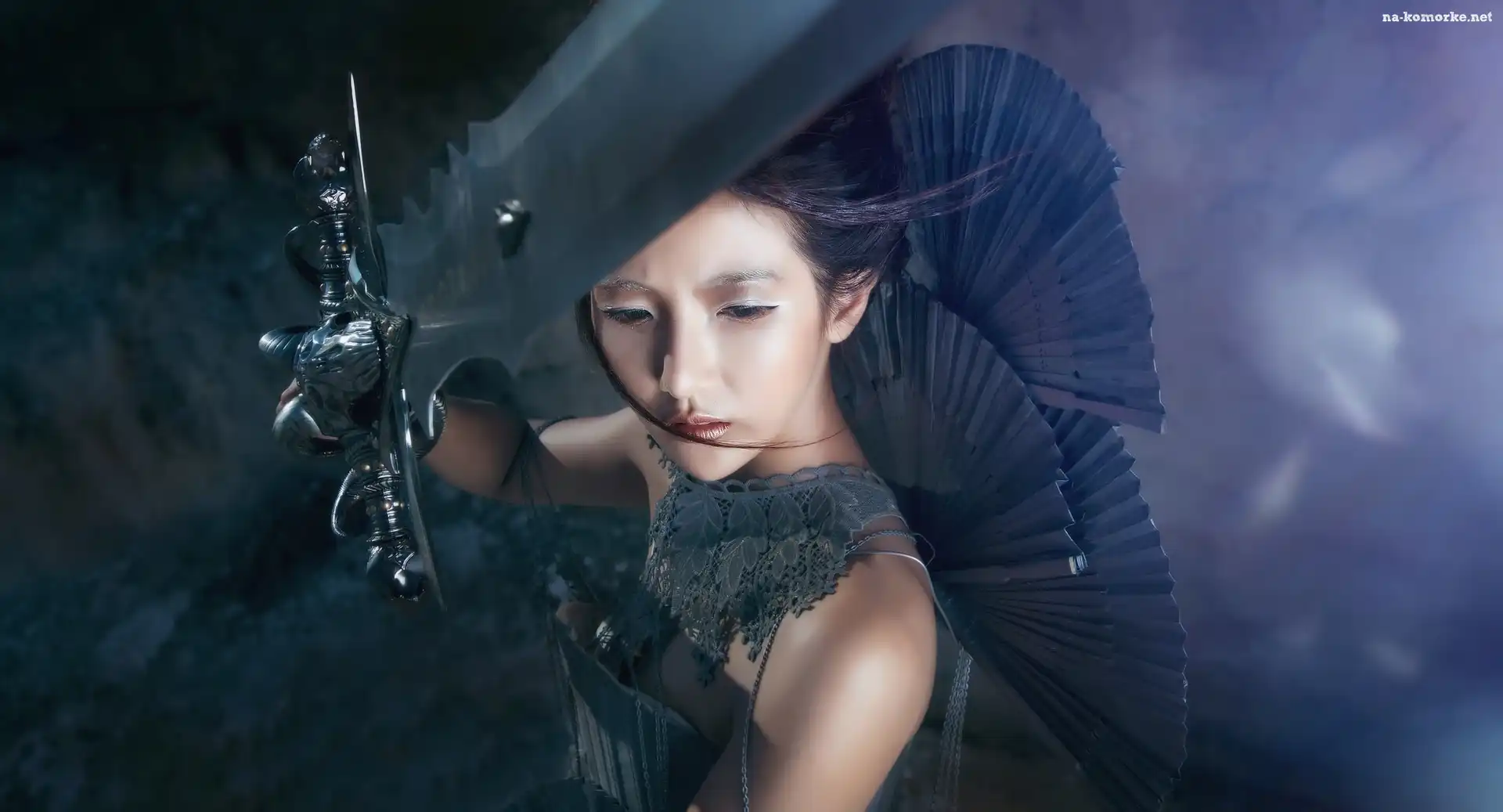 Kobieta, Uniesiony, Miecz na Komórkę