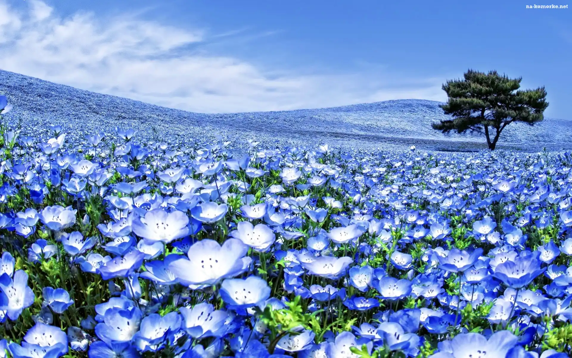 Uprawa, Niebieskie, Kwiaty, Pola, Drzewo na Komórkę