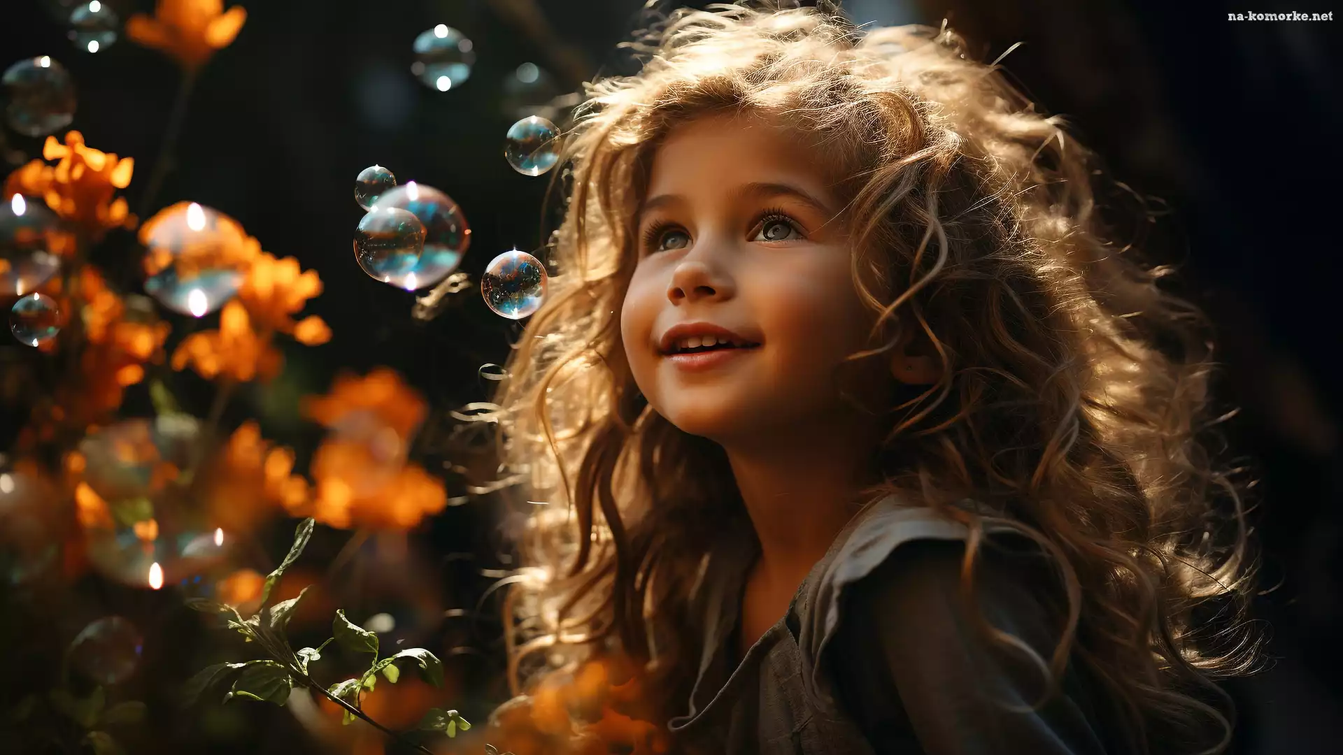 Bańki, Kwiaty, Dziewczynka, Uśmiech na Komórkę
