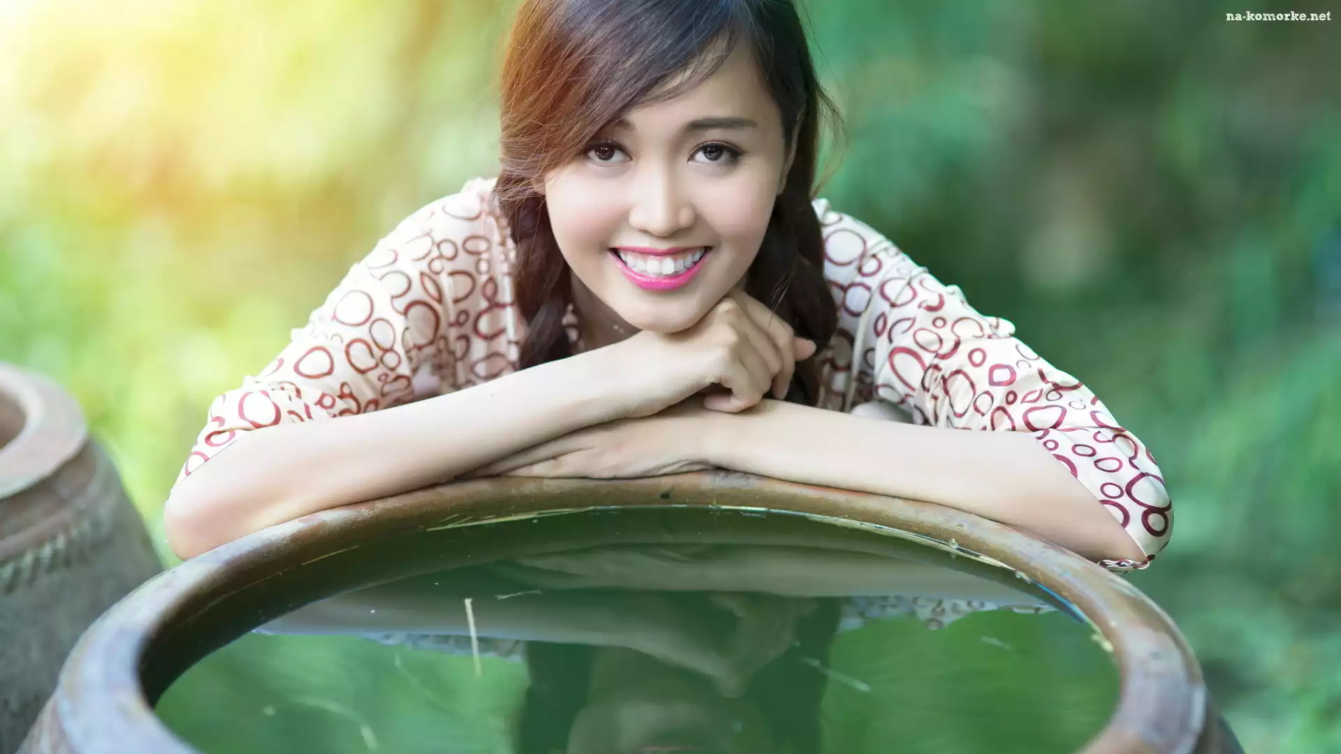 Dzbanek, Woda, Dziewczyna, Uśmiech na Komórkę