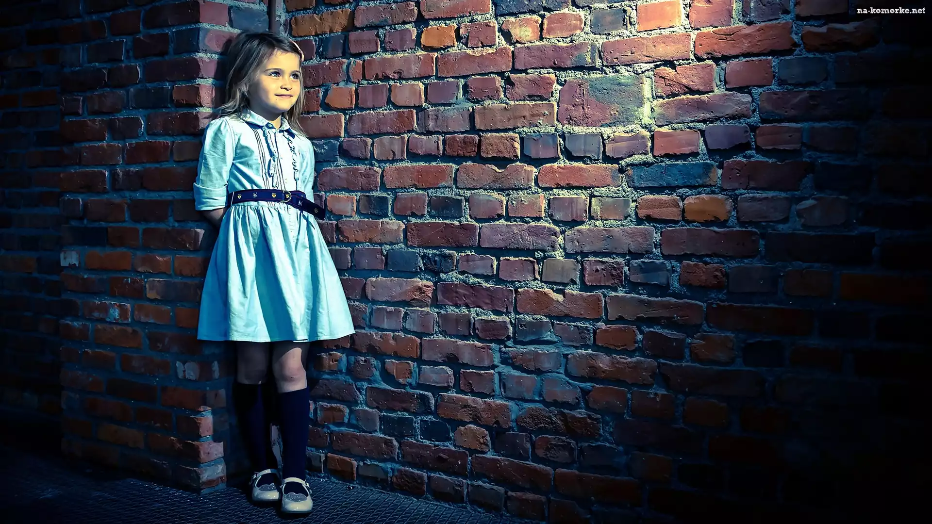 Uśmiechnięta, Mur, Dziewczynka, Ceglany na Komórkę