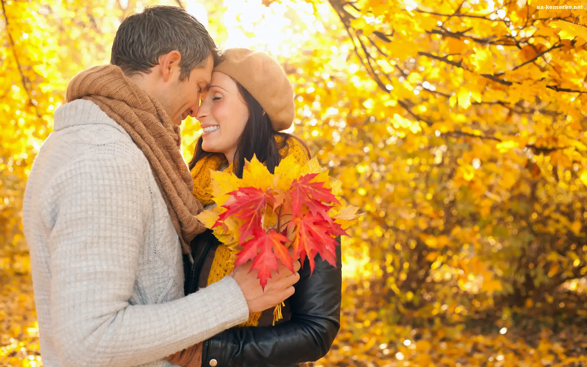 Ludzie, Uśmiechy, Zakochani, Radość, Para, Krajobraz, Jesień, Liście na Komórkę
