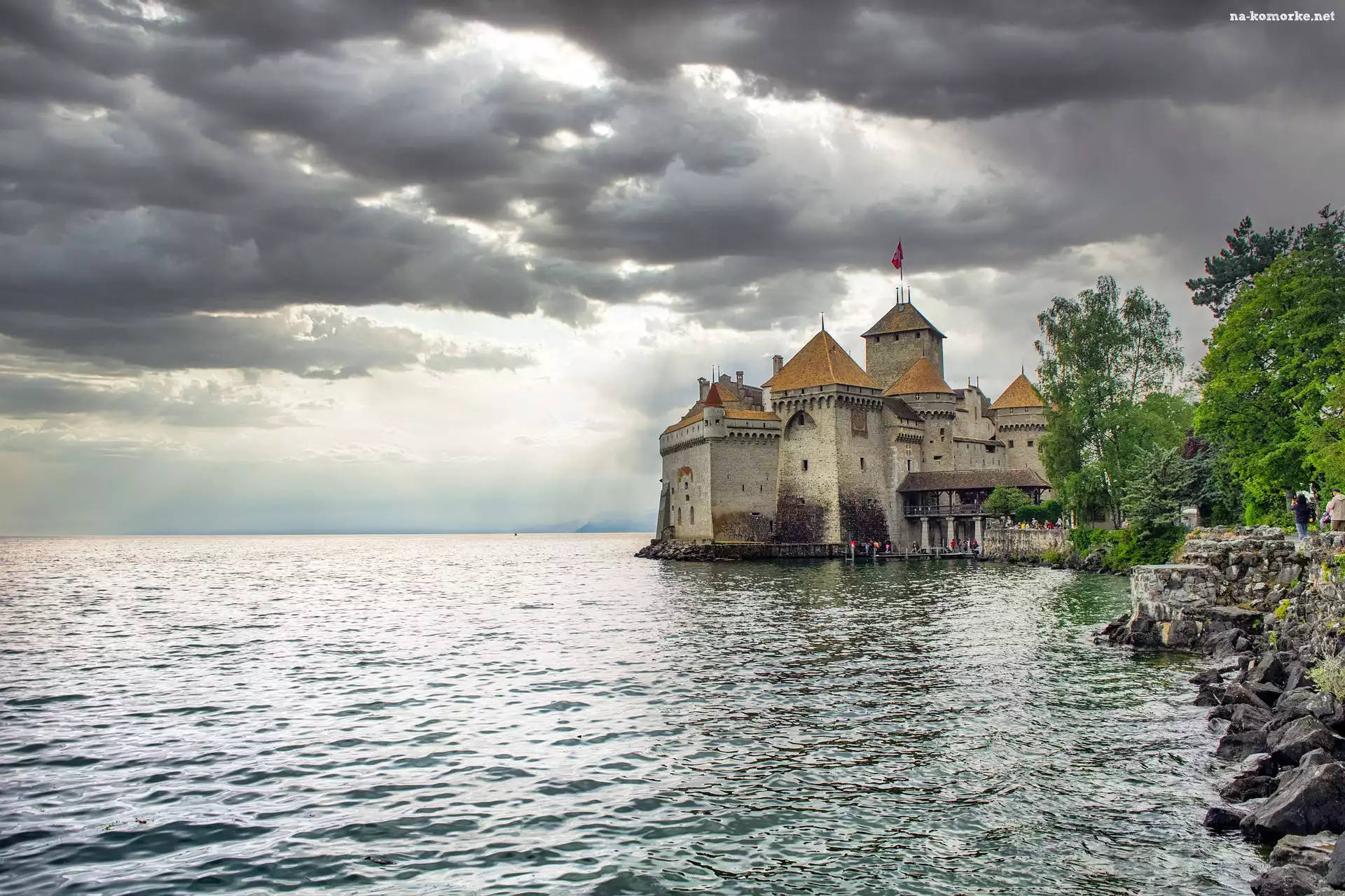 Zamek, Kanton Vaud, Skała, Szwajcaria, Chateau Chillon, Jezioro Genewskie, Ciemne, Chmury na Komórkę |