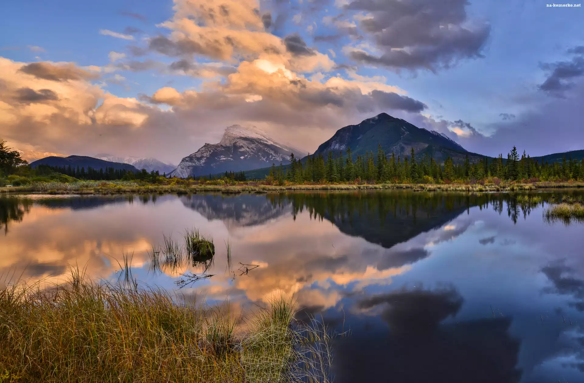 Jezioro Vermilion, Kanada, Park Narodowy Banff, Chmury, Góry na Komórkę