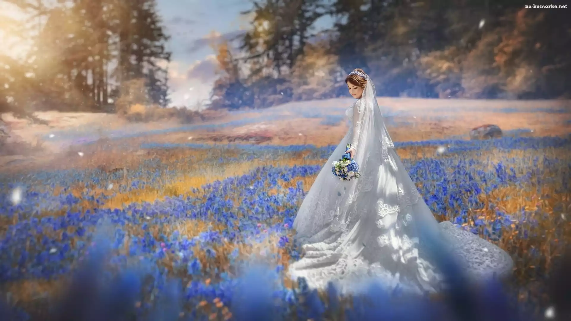 Kobieta W Białej Sukni, Drzewa, Łąka, Kwiaty na Komórkę