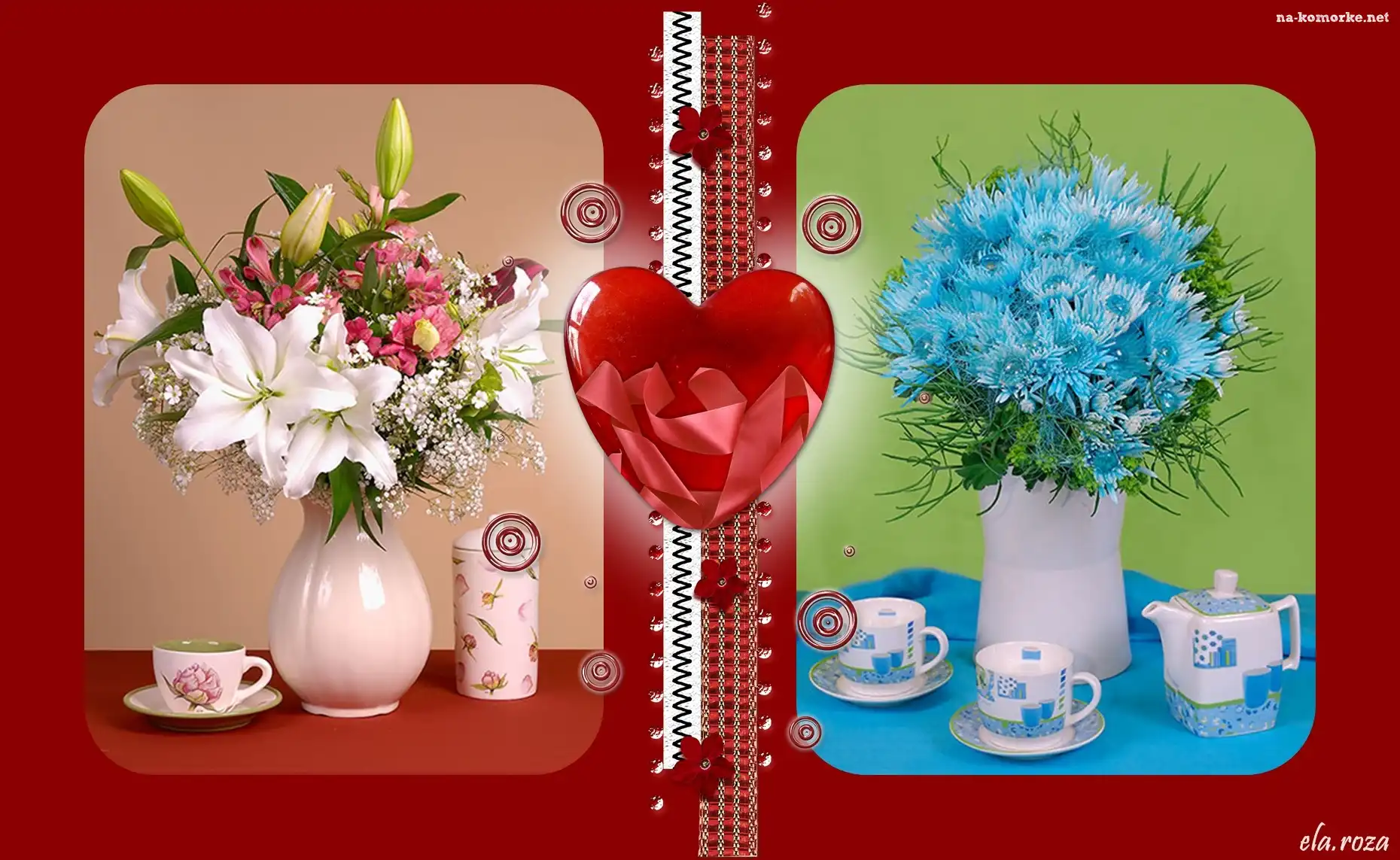W, Obrazki, Dwa, Filiżanki, Kwiaty, Wazonie na Komórkę