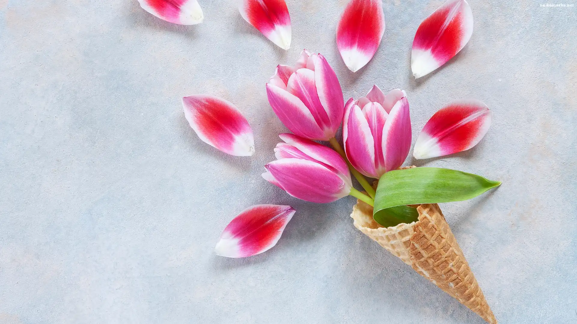 Kwiaty, Biało-niebieskie, Tulipany, Tło, Trzy, Płatki, Rożek, Waflowy na Komórkę