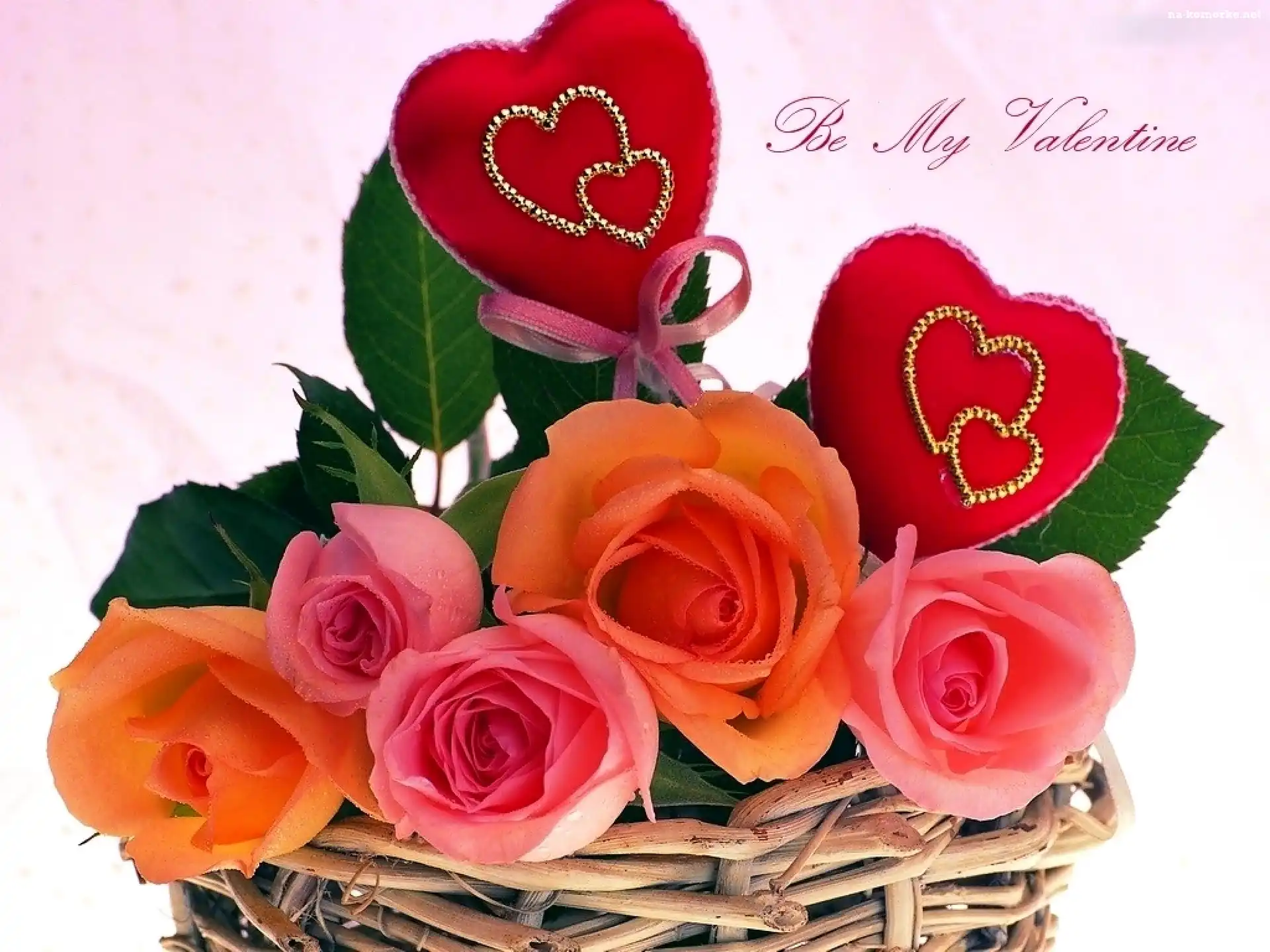 Walentynki, Koszyk, Kolorowe, Róże, Serduszka na Komórkę