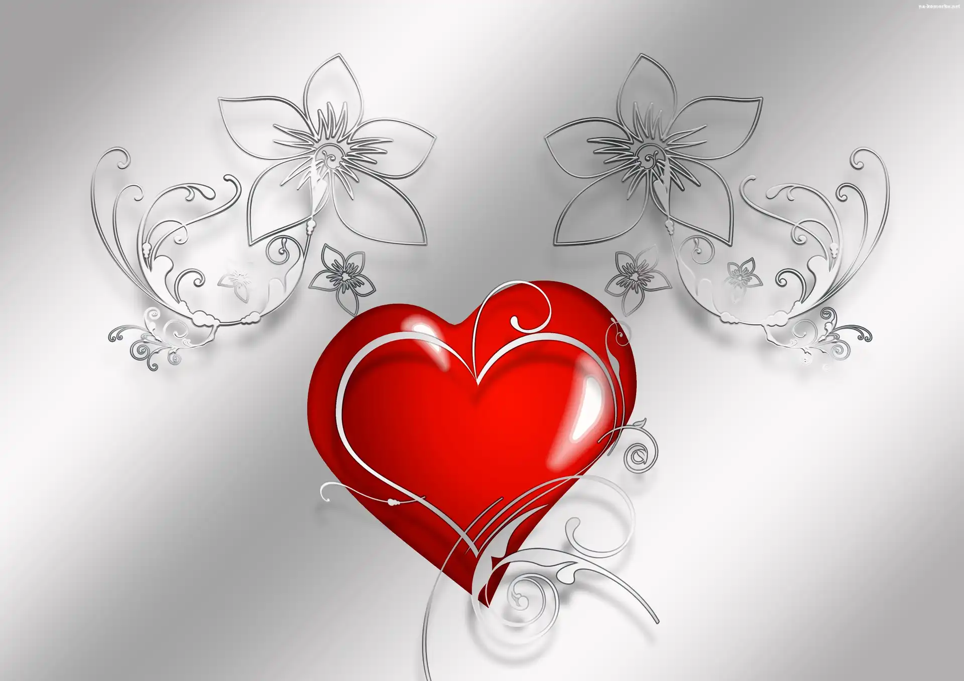 Walentynki, Miłosne, Serca, Kwiaty na Komórkę