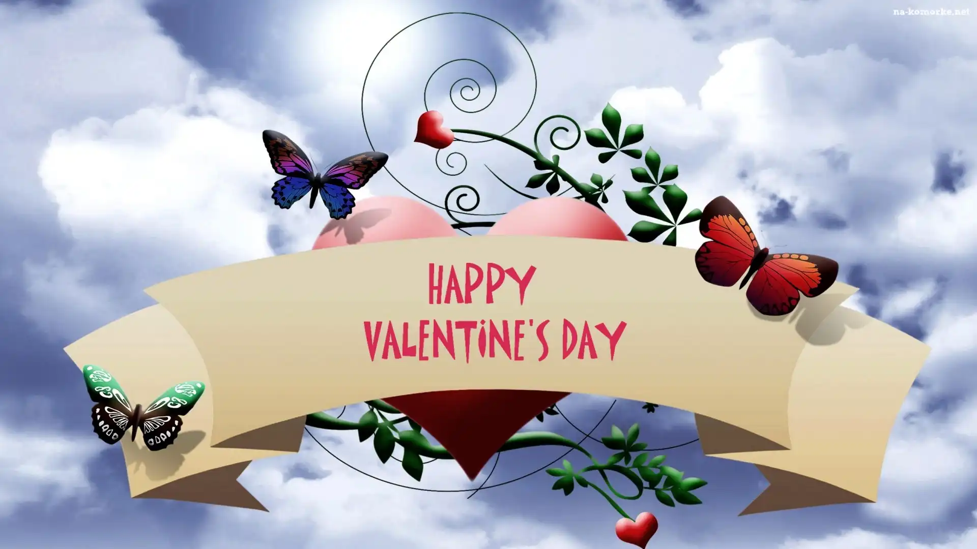 Walentynki, Kompozycja, Serce, Motyle na Komórkę
