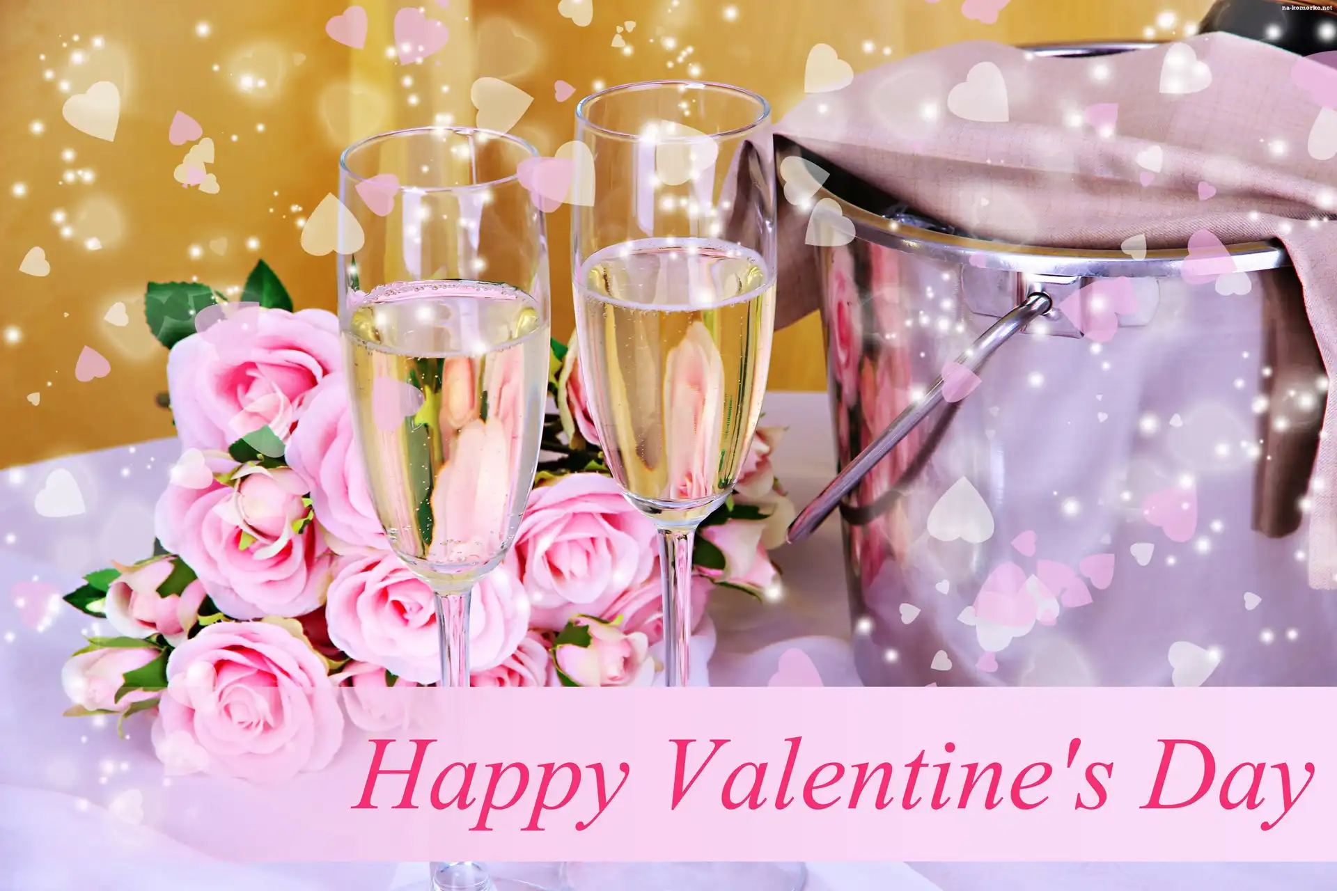 Walentynki, Bukiet, Róż, Szampan, Serduszka na Komórkę