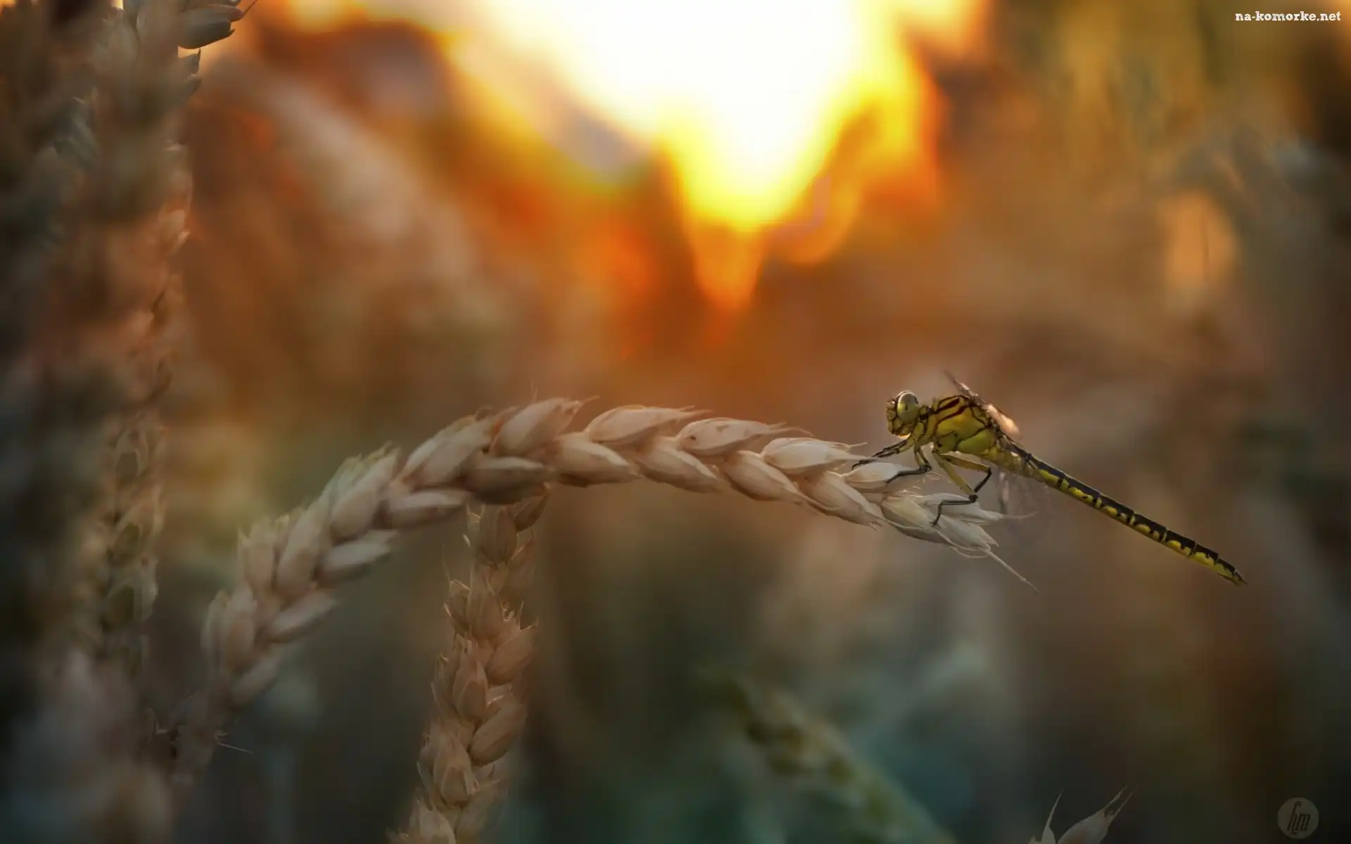 Ważka, Słońca, Zachód, Tło, Zboże, Rozmyte na Komórkę