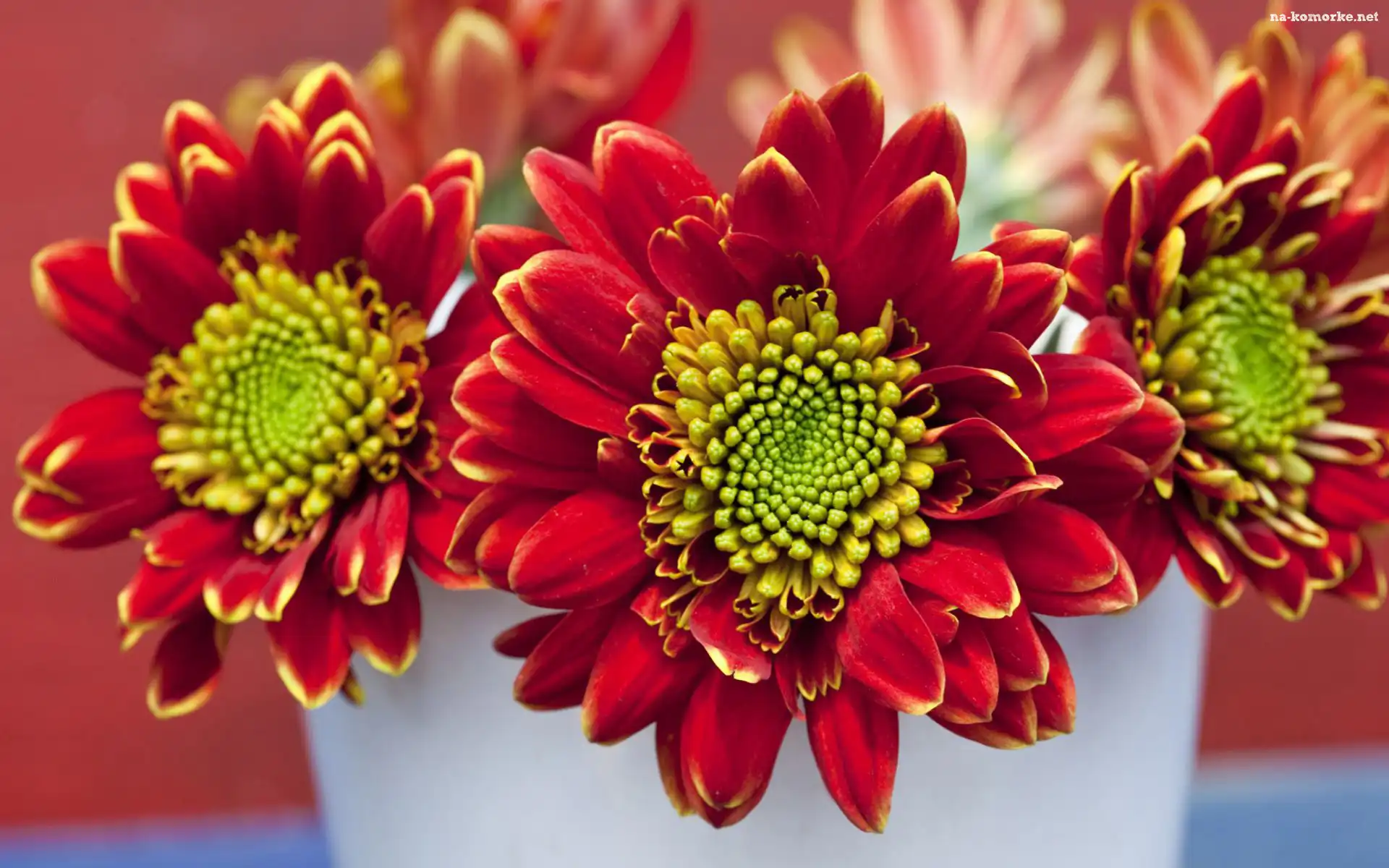Wazon, Czerwono, Żółte, Chryzantemy, Biały na Komórkę
