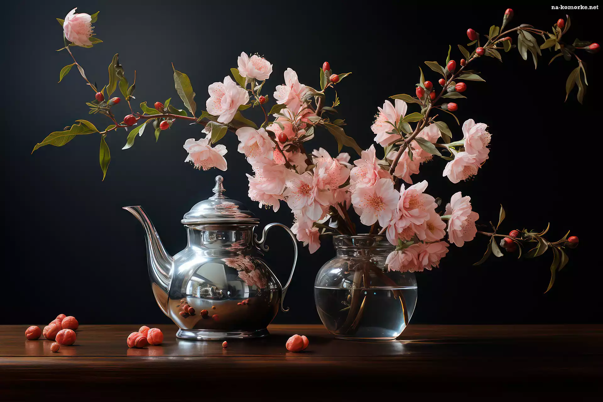 Kwiaty, Wazon, Imbryk, Gałazki, Kompozycja na Komórkę
