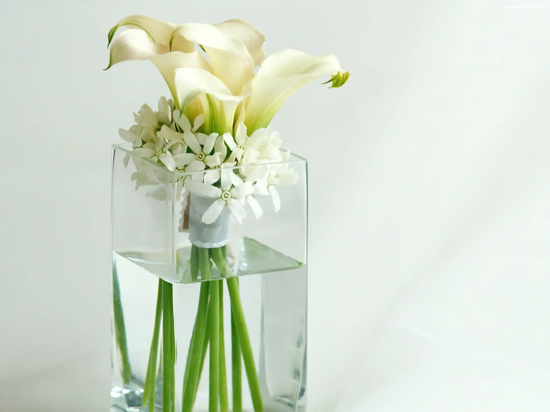 Wazon, Kompozycja, Białych, Kwiatków, Szklany na Komórkę