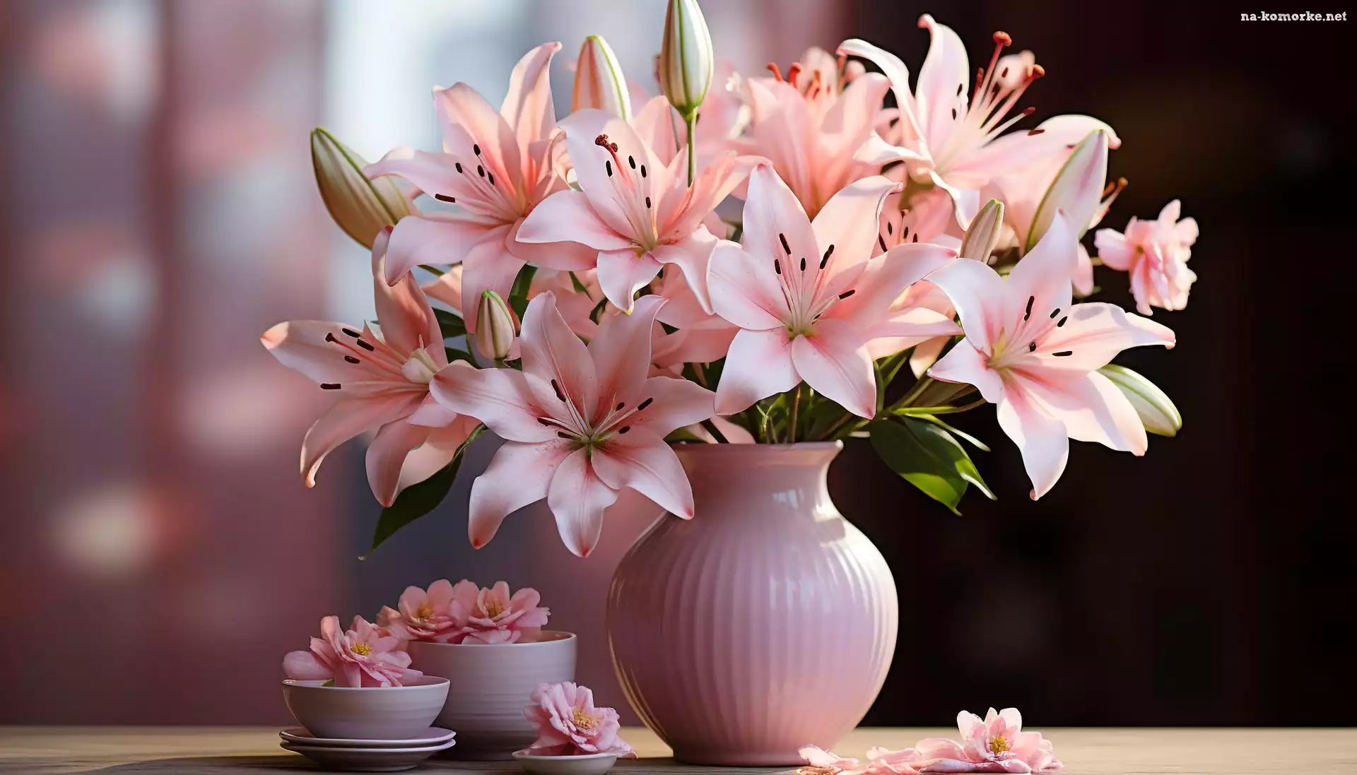 Bukiet, Kwiaty, Pąki, Wazon, Różowe, Lilie na Komórkę