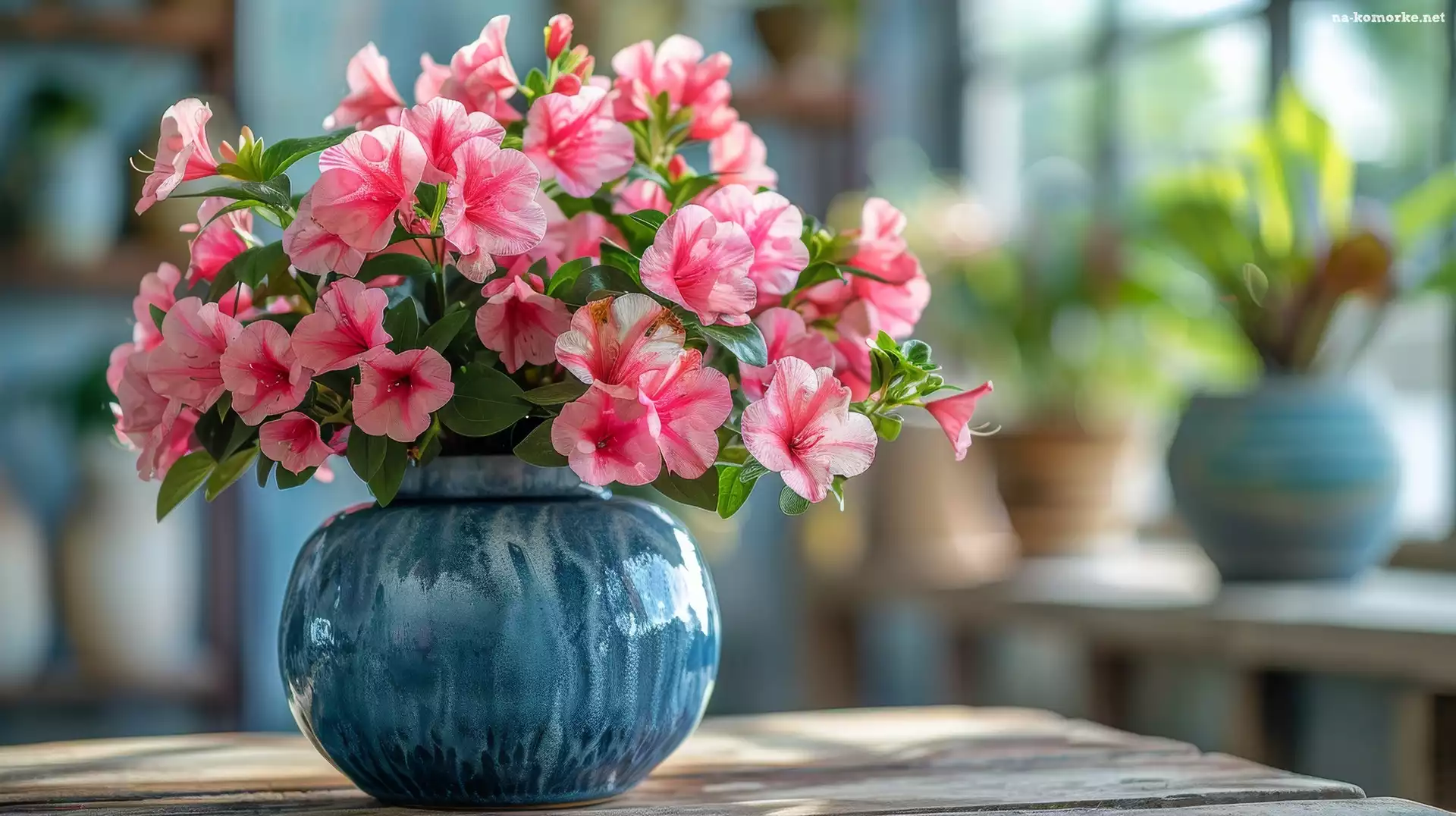 Niebieski, Bukiet, Surfinia, Wazon, Kwiaty, Różowe na Komórkę