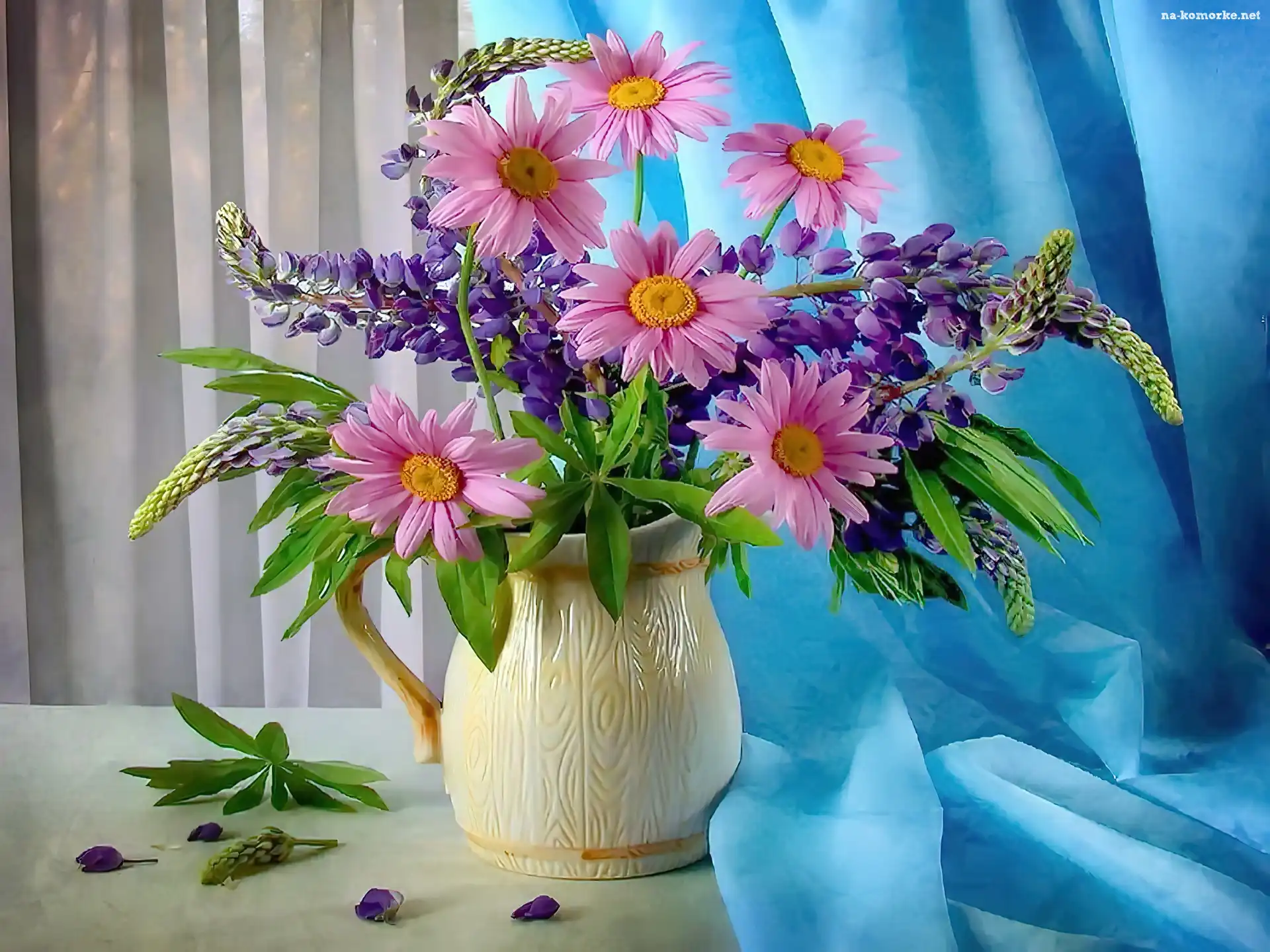 Wazon, Margerytki, Łubin, Różowe na Komórkę