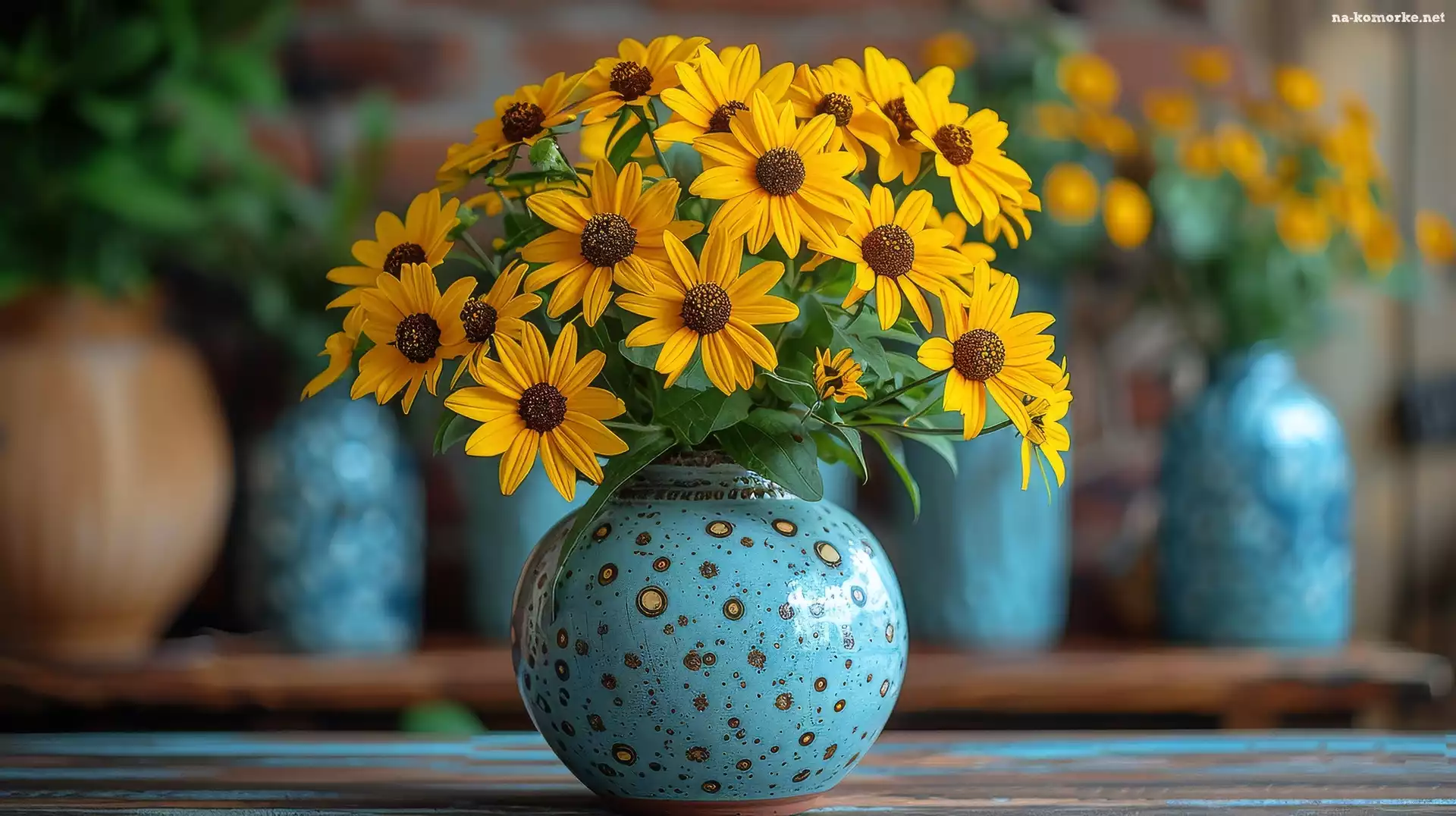 Niebieski, Bukiet, Rudbekia, Wazon, Kwiaty, Żółte na Komórkę
