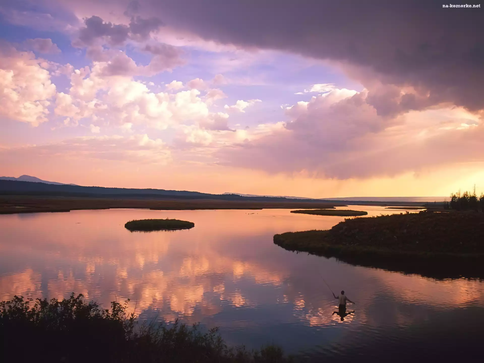 Wędkowanie, Chmura, Jezioro, Niebo na Komórkę