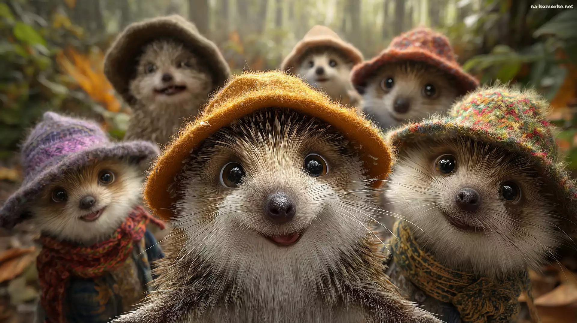 Jeże, Kapelusze, Selfie, Wełniane, Grafika AI na Komórkę
