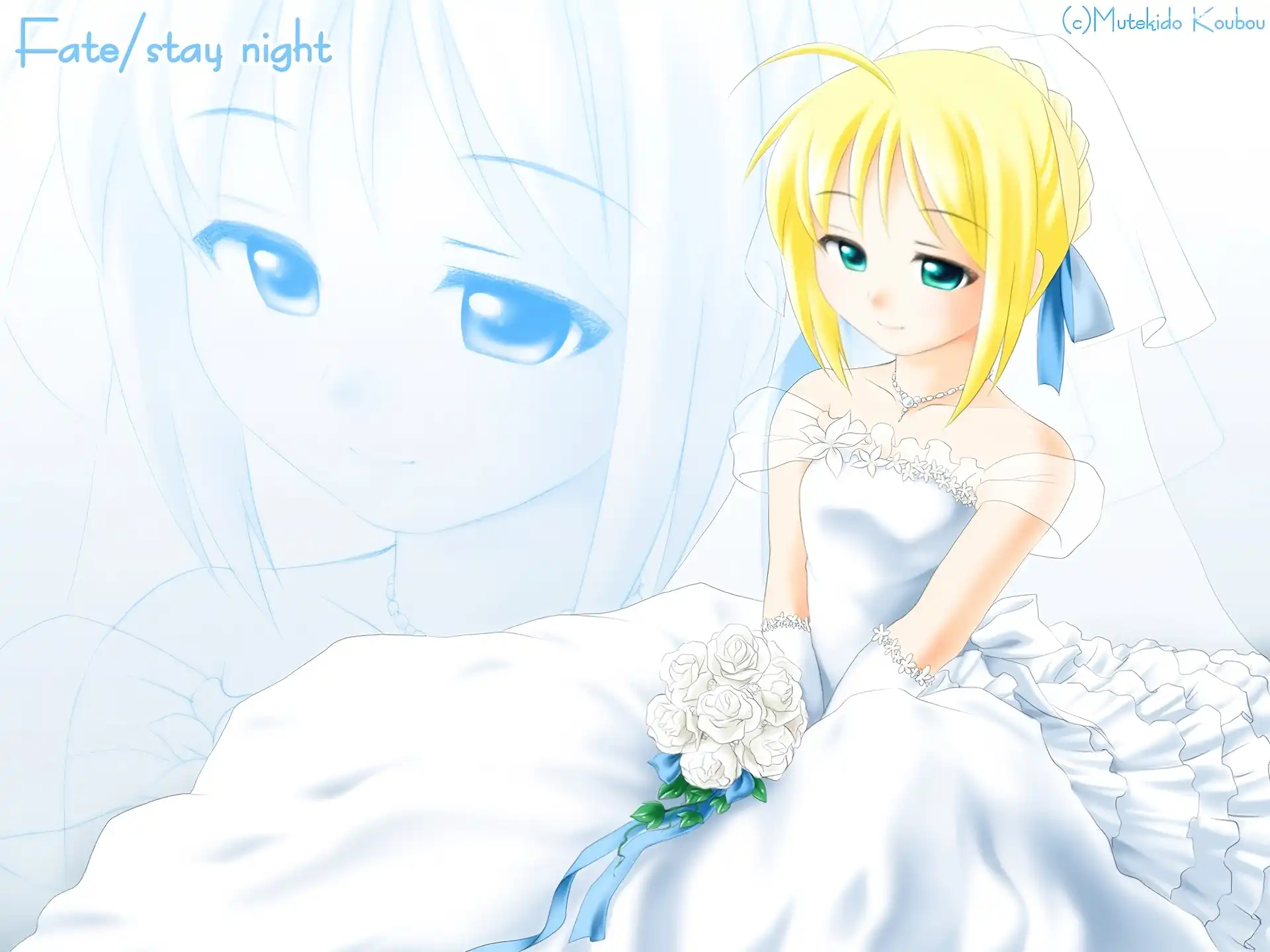 kwiatki, welon, dziewczyna, Fate Stay Night, panna młoda na Komórkę